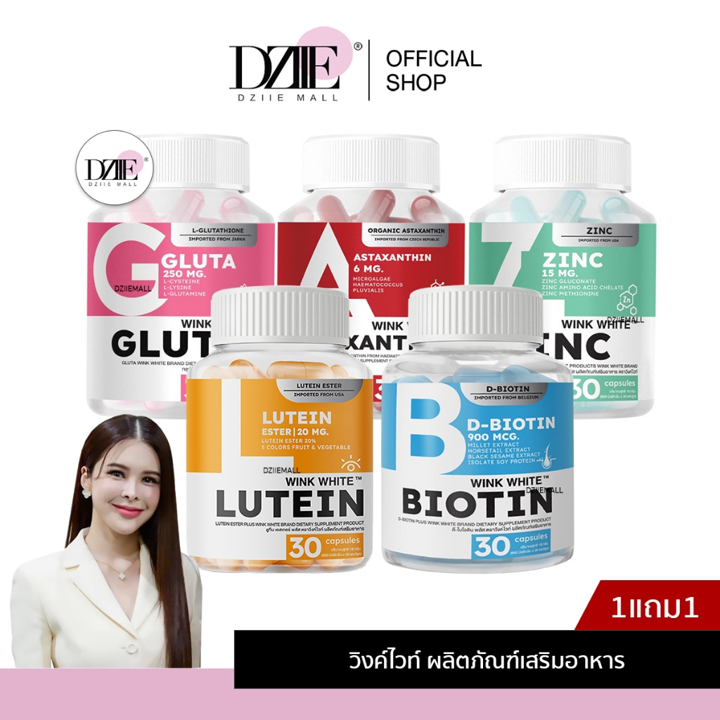 [SALE][Exp.1/8/26] Wink White Gluta Zinc Astaxanthin Biotin Lutein วิงค์ไวท์ กลูต้า ซิงค์ แอสตาแซนทิน ไบโอติน ลูทีน