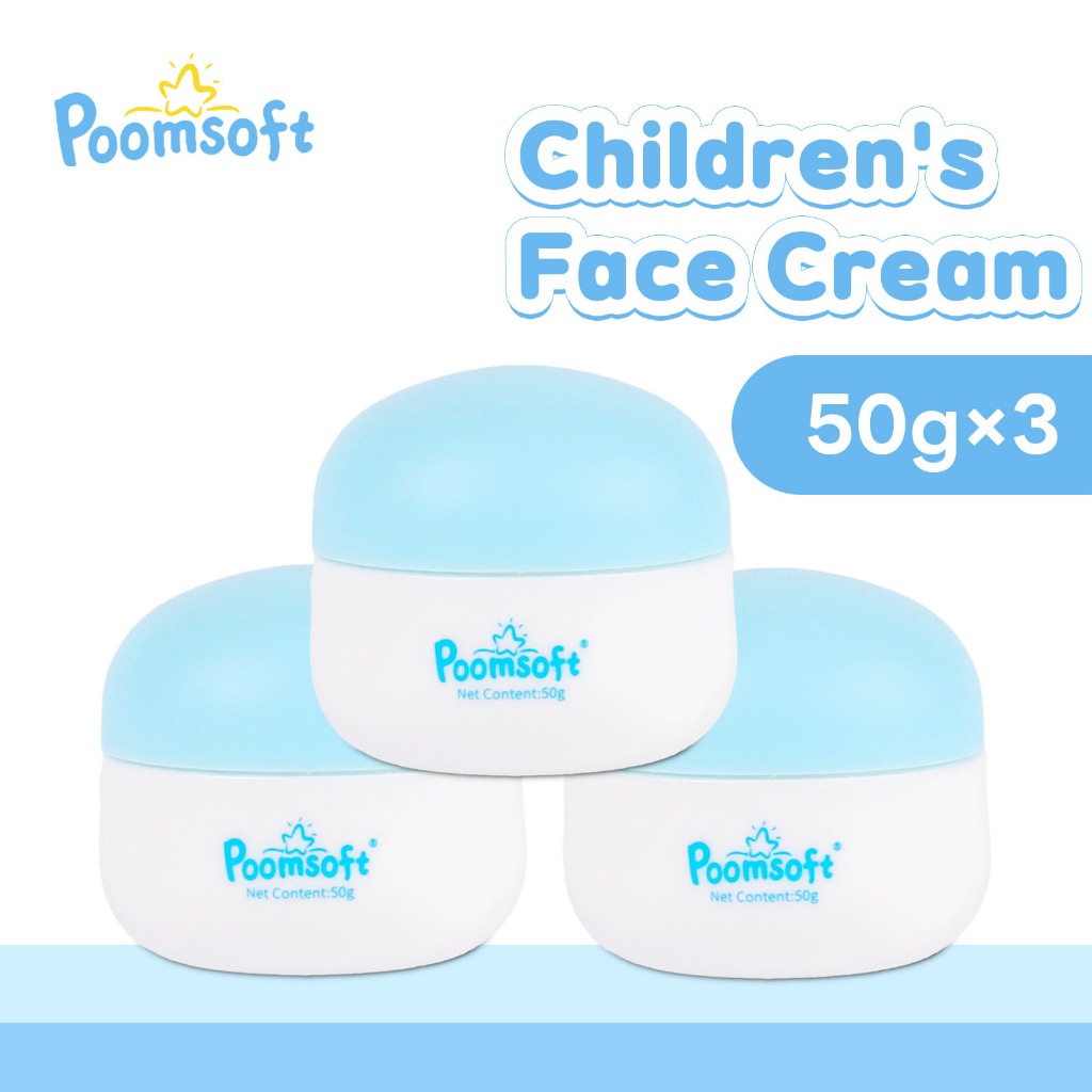 Poomsoft ครีมทาหน้าเด็ก สูตร ครีมบำรุงผิวหน้าสำหรับเด็ก ครีมบำรุงผิวเด็ก เบบี้ครีม สูตรอ่อนโยน 50G×3 BABY FACE CREAM