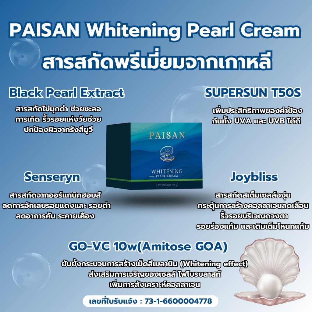 (ของแท้+พร้อมส่ง)ครีมไข่มุกเกาหลี📿 ไพศาล ไวท์เทนนิ่ง เพิร์ล ครีม ดิว ธีรภัทร์ PAISAN Whitening Pearl Cream ขนาด 10g.