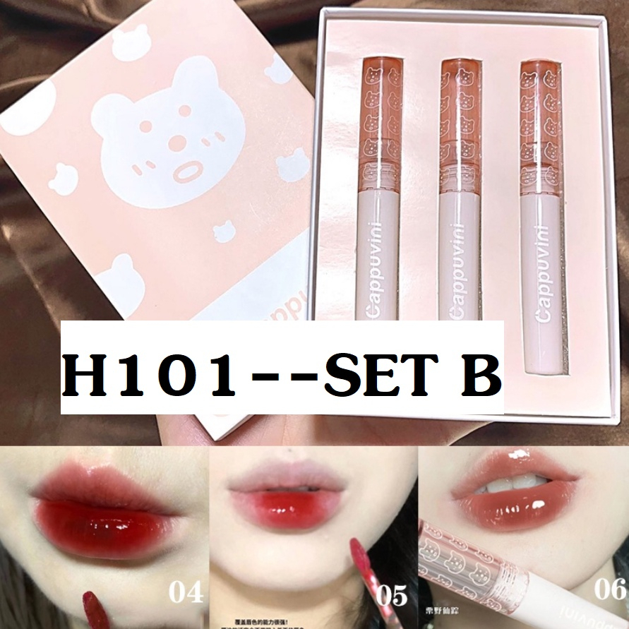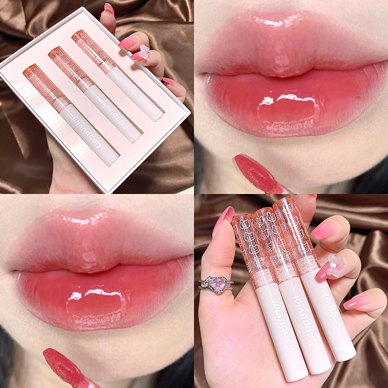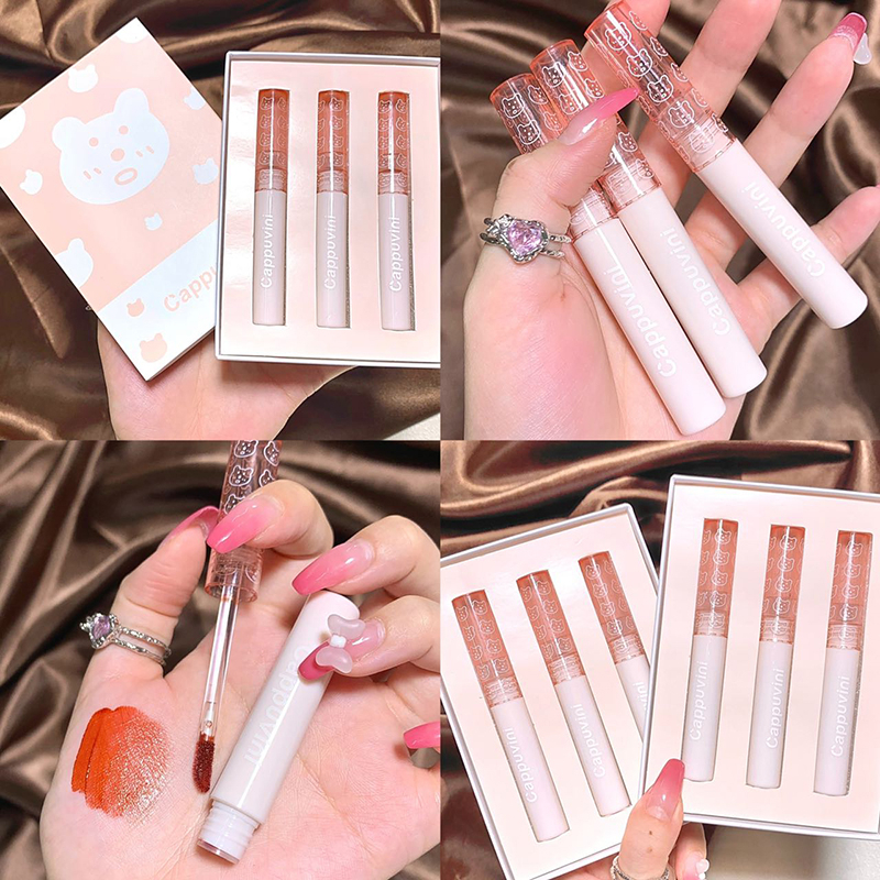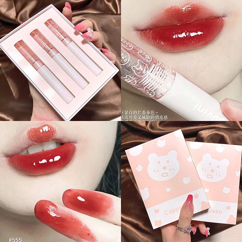 [เซ็ต3ชิ้น] ลิปหมี ลิปกลอส ติดทน กันน้ำ ไม่หลุด ติดทน ลิปสติก บับเบิลแบร์ สดใส ปากไม่ดำ ลิปกอส -Cp122