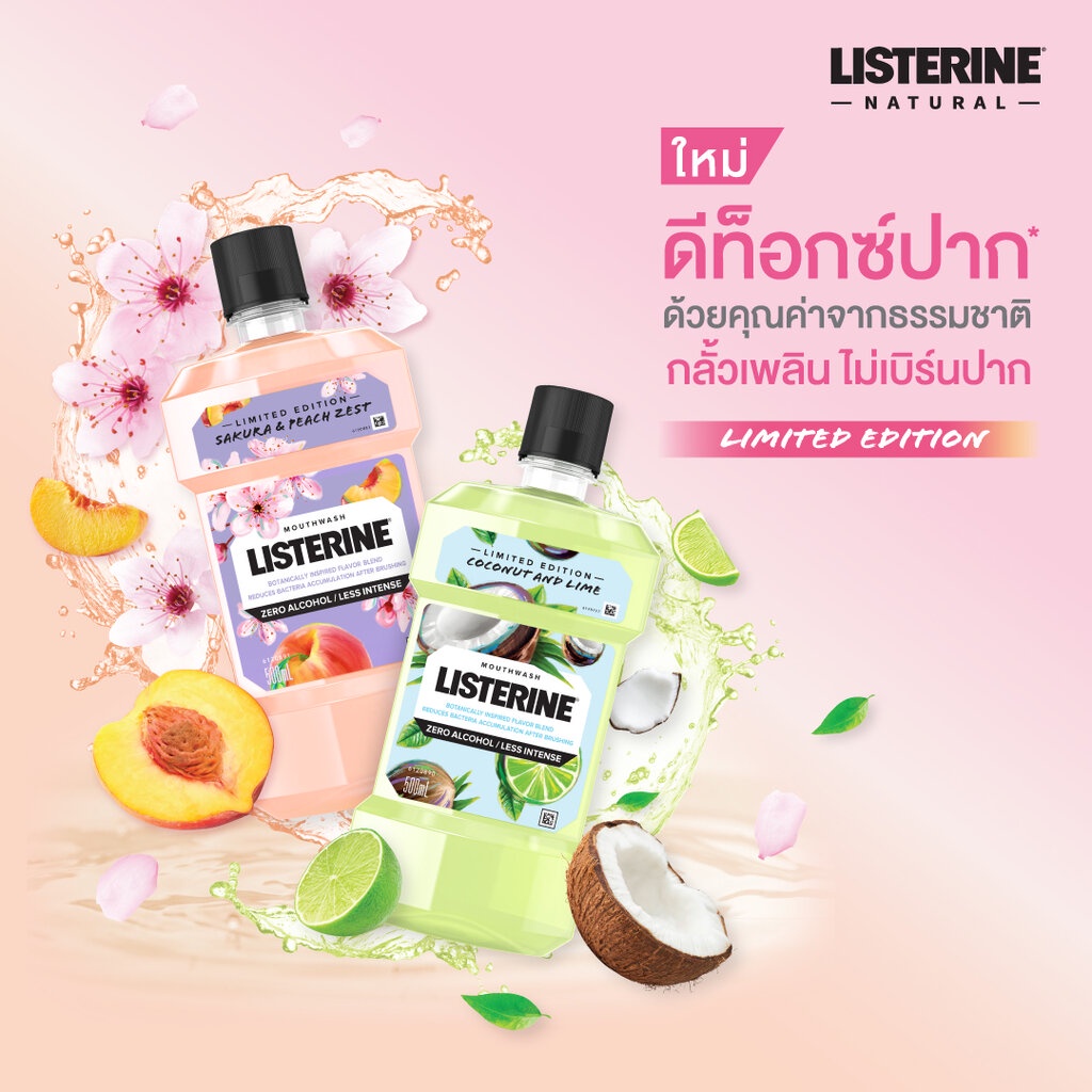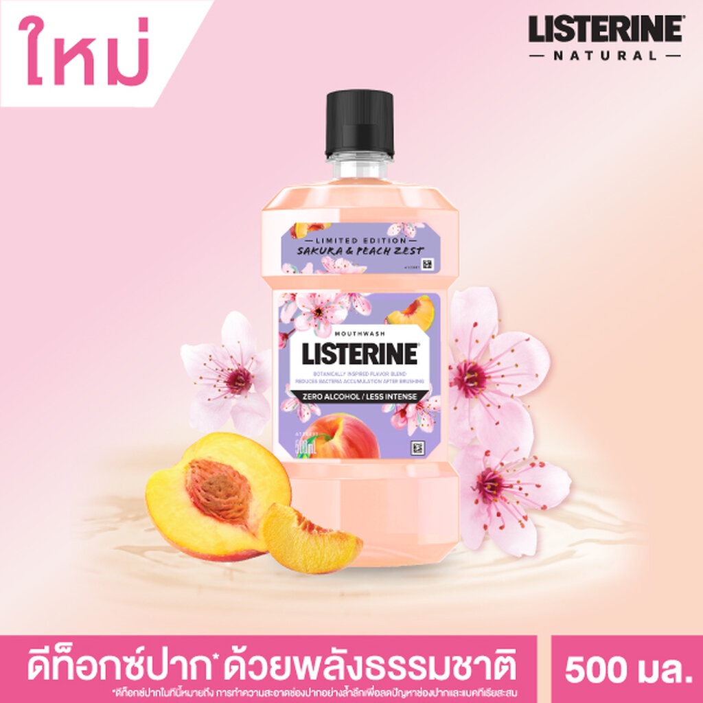 Listerine ลิสเตอรีน น้ำยาบ้วนปาก ซากุระ แอนด์ พีช ซีโร่ 500 มล. (รุ่นลิมิเต็ด อิดิชั่น)
