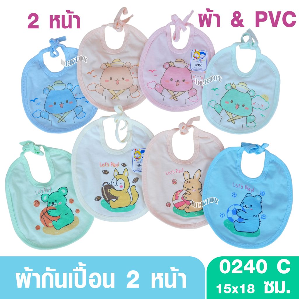 Baby Hood เบบี้ฮูด 0240C ผ้ากันเปื้อนเด็ก 2 หน้า ด้านบนเป็นผ้า ด้านล่างเป็นผ้ายาง PVC แบบผูก