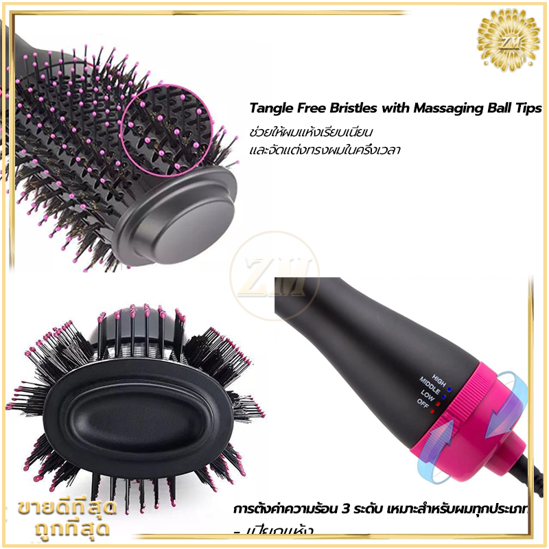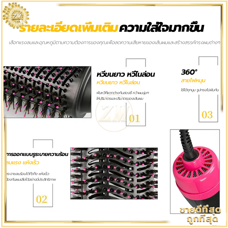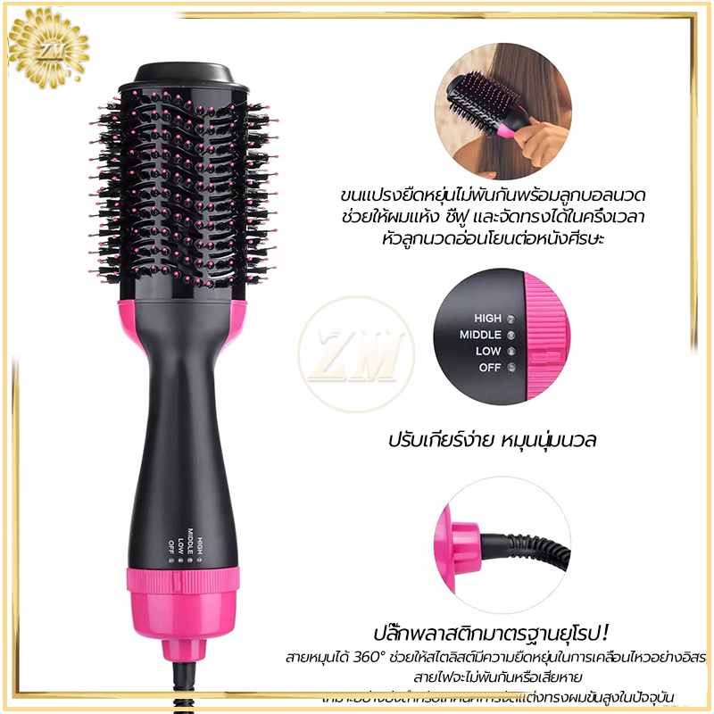 หวีไดร์ หวีไดร์เป่าผม 4in1 ปรับอุณหภูมิได้ 3 ระดับ ร้อนเร็ว ภายใน 10 วินาที/แห้งเร็ว/ผมหยิก ผมตรง ผมแห้ง จัดแต่งทรง