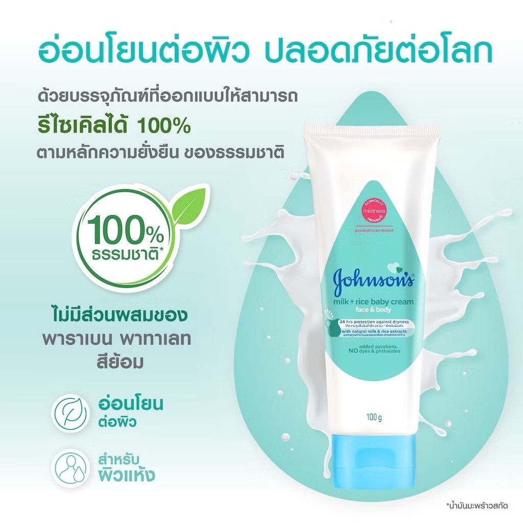 (1 แถม 1) จอห์นสัน เบบี้ ครีม Johnson's Baby Cream Face & Body 100 กรัม