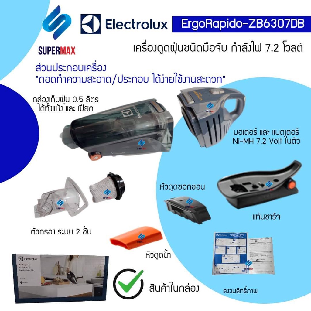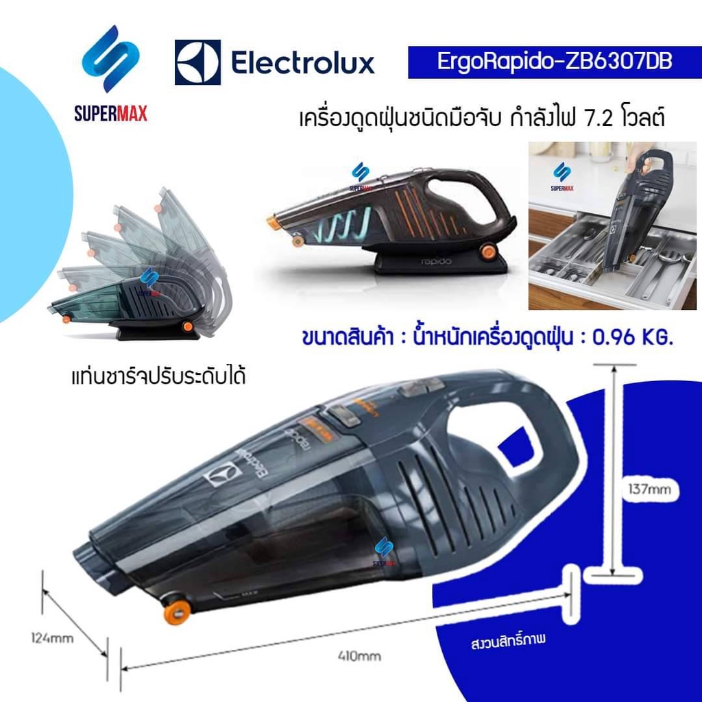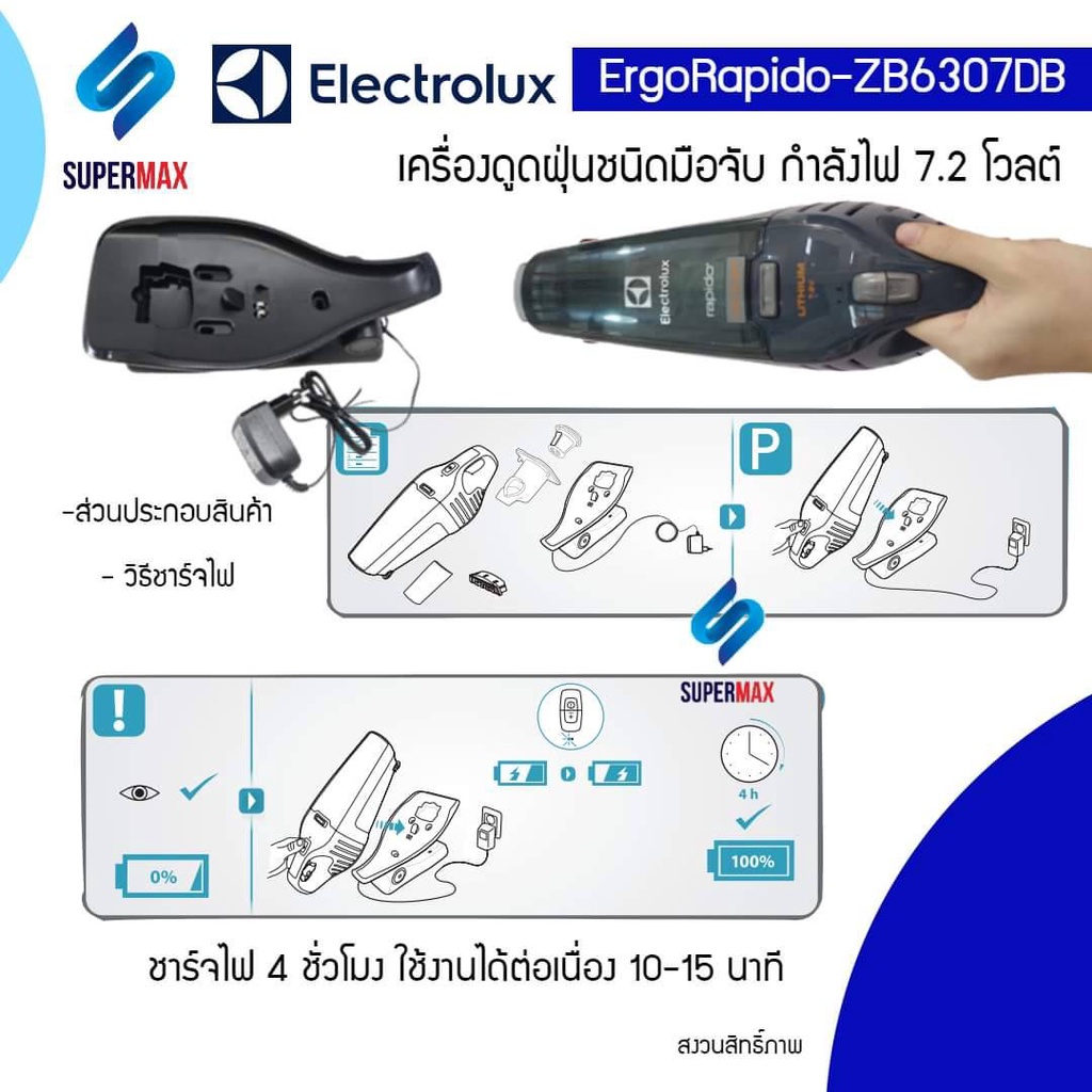ELECTROLUX เครื่องดูดฝุ่นมือถือแบบไร้สาย รุ่น ZB6307DB ดูดได้ทั้งบริเวณแห้งและเปียก แบตLithium 7.2V รับประกันสินค้า 2ปี