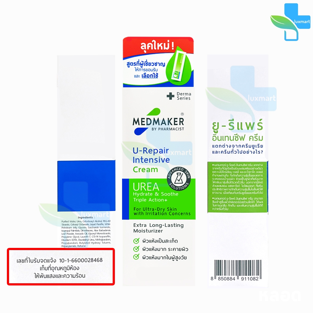 Medmaker U-Repair Intensive Cream เมดเมเกอร์ ยู-รีแพร์ อินเทนซีฟ ครีม 30,50 กรัม [1 หลอด สีเขียว] EE 922X ใช้ทา