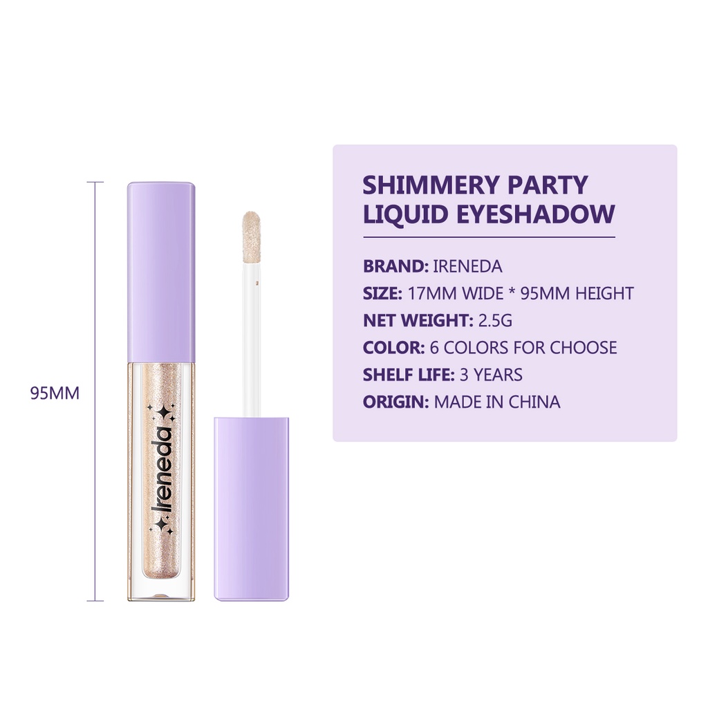 Ireneda อายแชโดว์ชิมเมอร์ กลิตเตอร์ เม็ดสีสูง แห้งเร็ว ติดทนนาน กันเปื้อน สําหรับงานปาร์ตี้