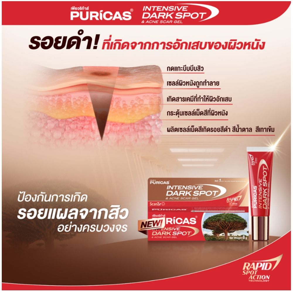 Puricas Intensive Dark Spot & Acne Scar Gel 8g. - เพียวริก้าส์ อินแทนซีฟ ดาร์ก สปอต แอคเน่ สการ์ เจล 8 กรัม