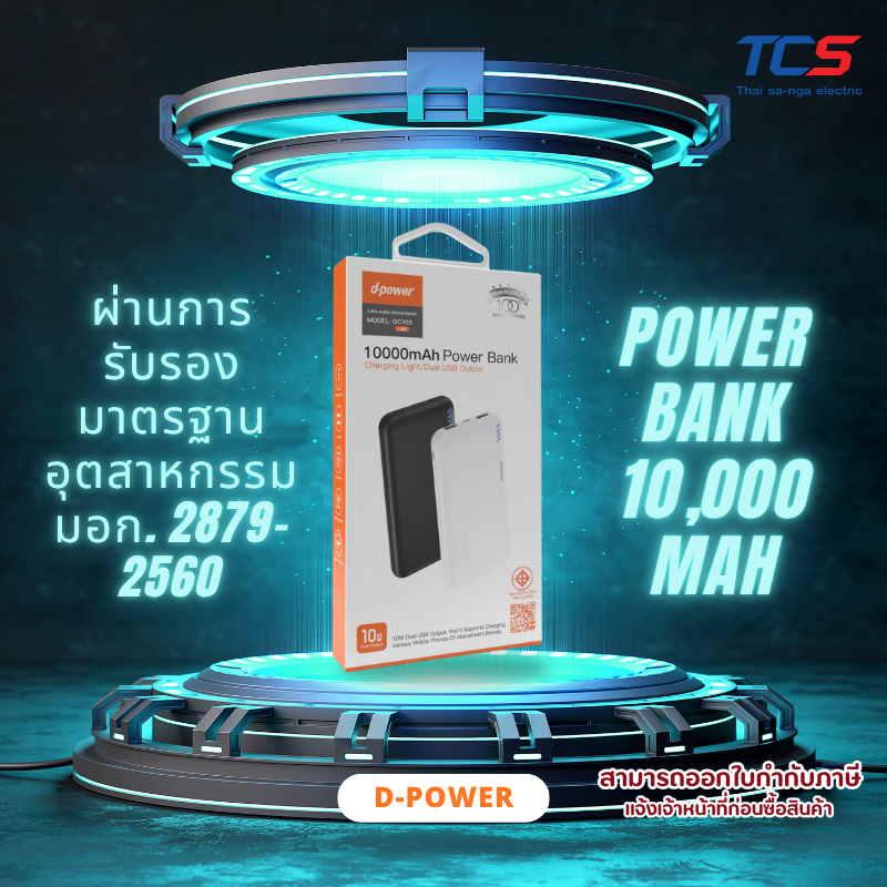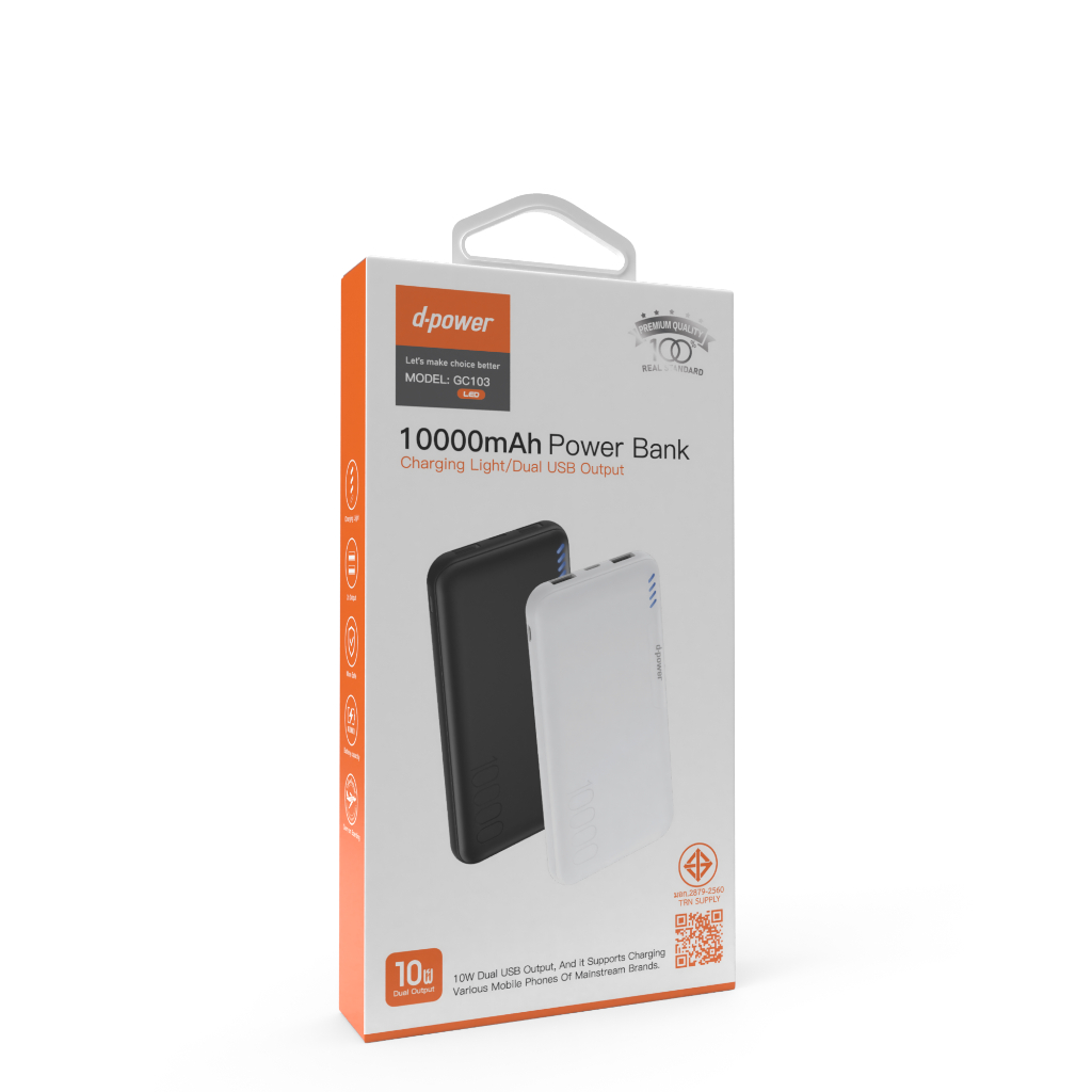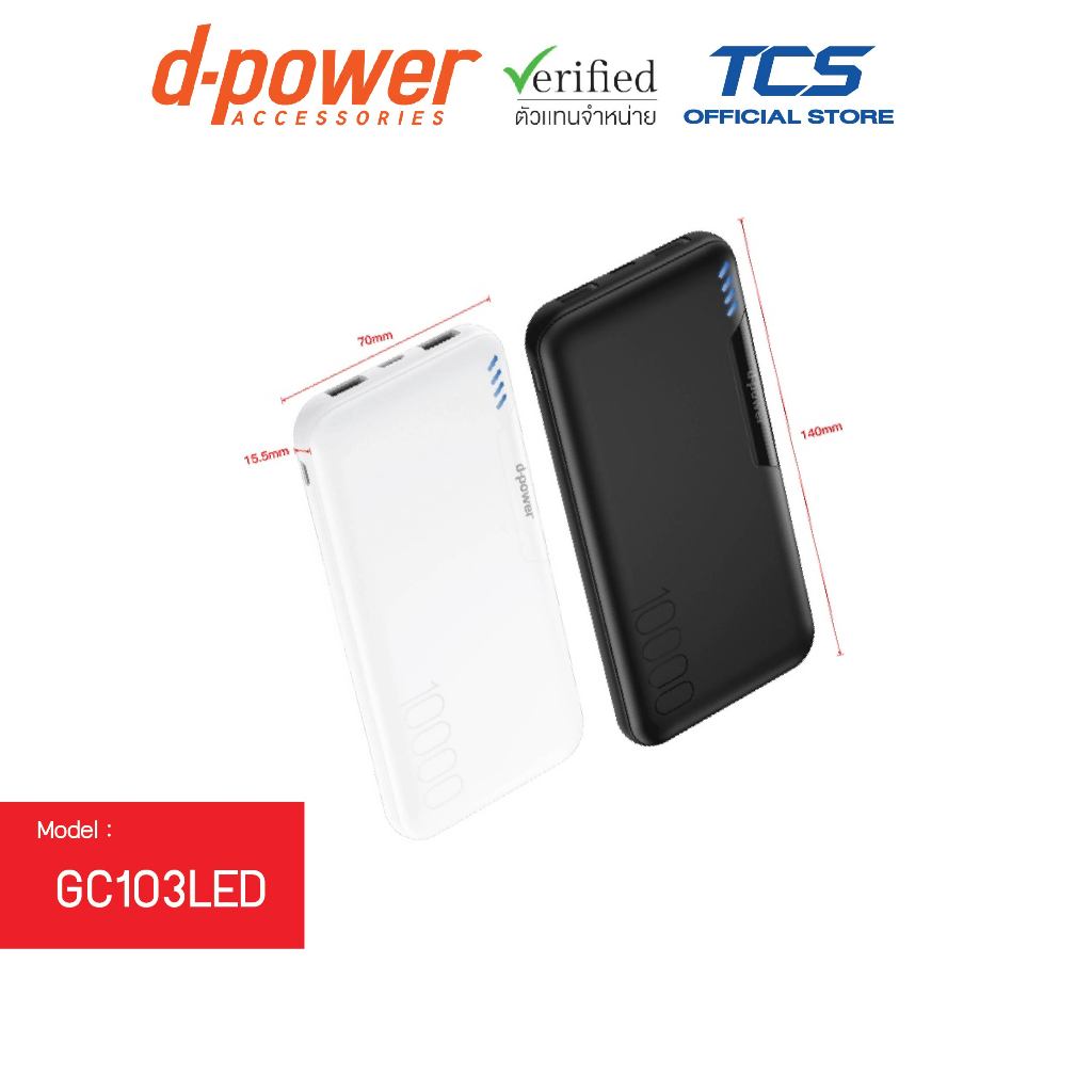 d-power แบตสำรอง รุ่น GC103LED Power Bank 10,000 mAh พาวเวอร์แบงค์ ชาร์จ Type C วัสดุ ABS แข็งแรง