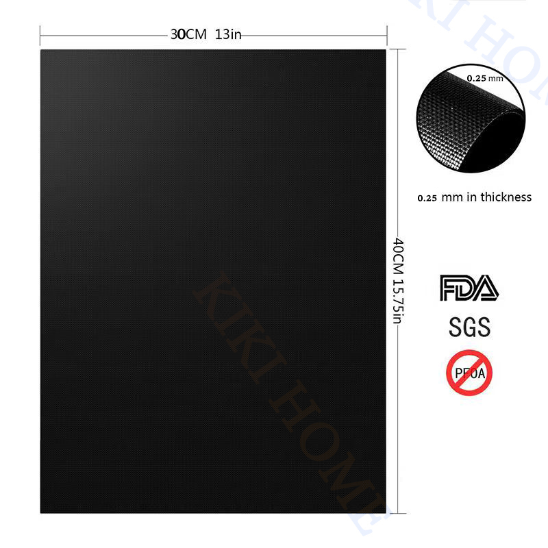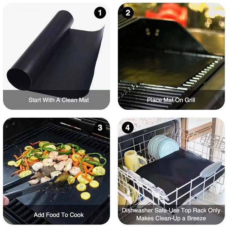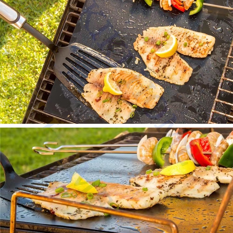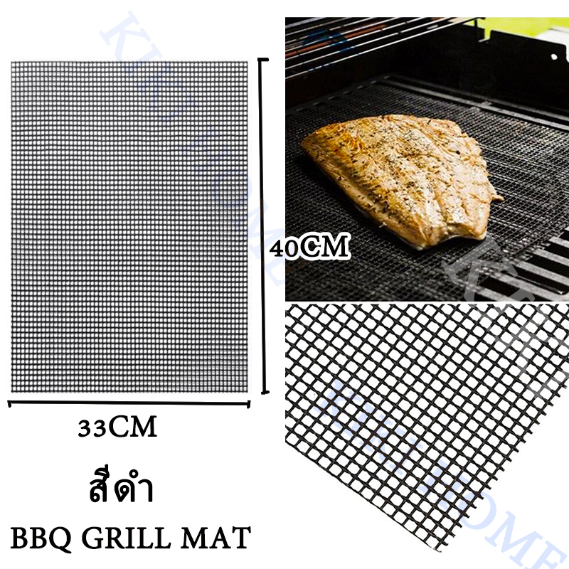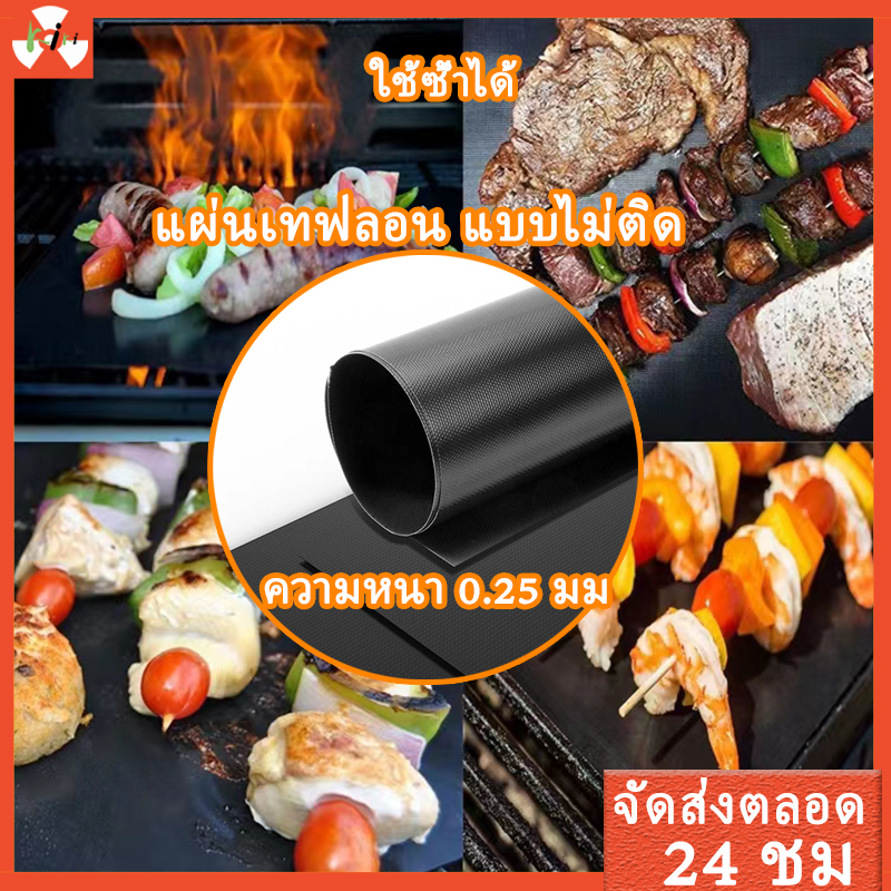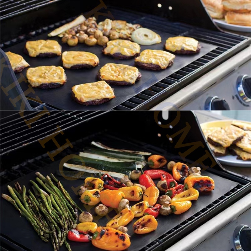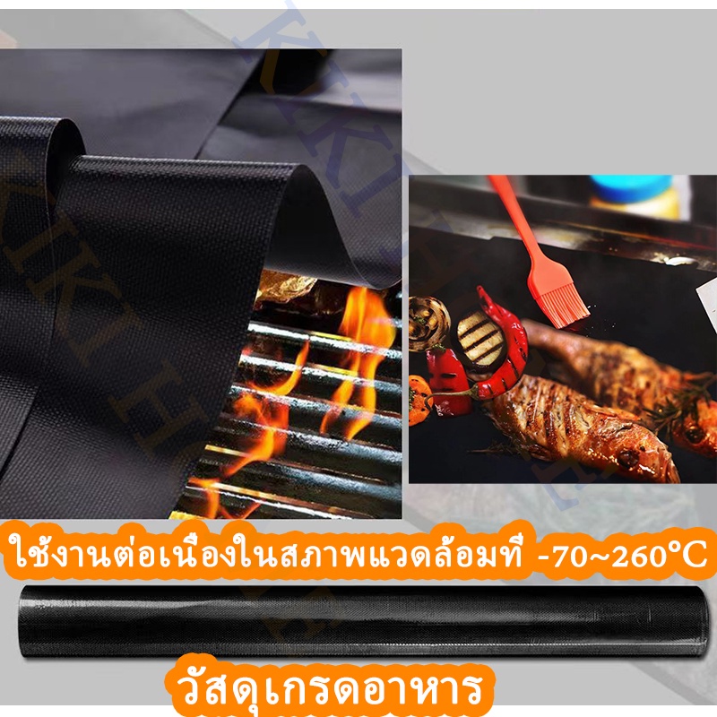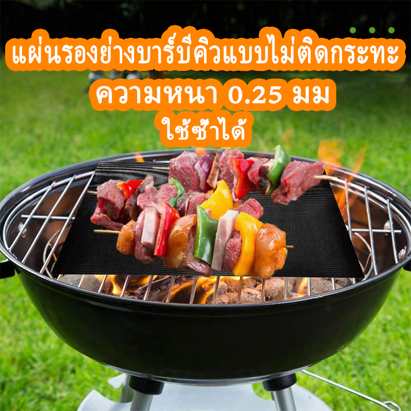 แผ่นเทฟล่อน รองปิ้งย่าง BBQ สีเหลี่ยมผืนผ้า แผ่นรองย่างบาร์บีคิว แบบไม่ติดกระทะ นำกลับมาใช้ใหม่ได้ 2 ขนาด ความหนา0.25 มม