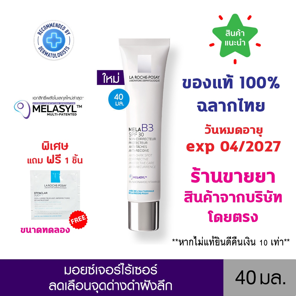 🔥แท้100% พร้อมส่ง🔥 La Roche-Posay Mela B3 Cream SPF30 ลา โรช-โพเซย์ มอยส์เจอร์ไรเซอร์ลดเลือนจุดด่างดำ ฝ้าแดดฝังลึก 40 ml