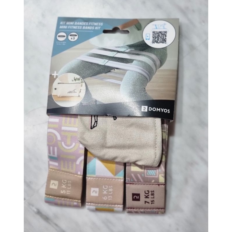 E-TAX🎯ชุด 3 ชิ้น DOMYOS ยางยืด ออกกําลังกาย (แรงต้าน 5/6/7กก.)+กระเป๋า ยางยืดออกกำลัง ยางยืดฟิตเนส