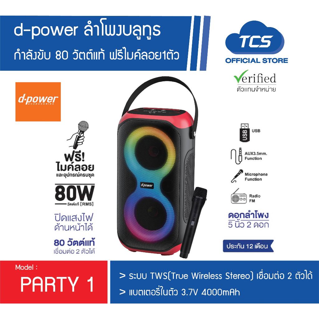 PARTY1 d-power ลำโพงบลูทูธ ขนาด 80วัตต์ ฟรีไมค์ลอย1ตัว เสียงดังชัด เบสแน่น ประกัน1ปี