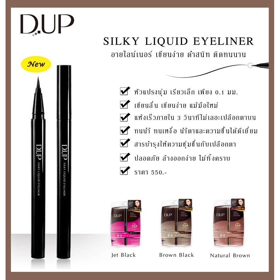 DUP Silky liquid eyeliner WP DUPดีอัพ อายไลเนอร์ ลิควิด สีดำ น้ำตาลเข้ม น้ำตาลแดง ติดทนนานตลอดทั้งวัน ทนน้ำ ทนเหงื่อ