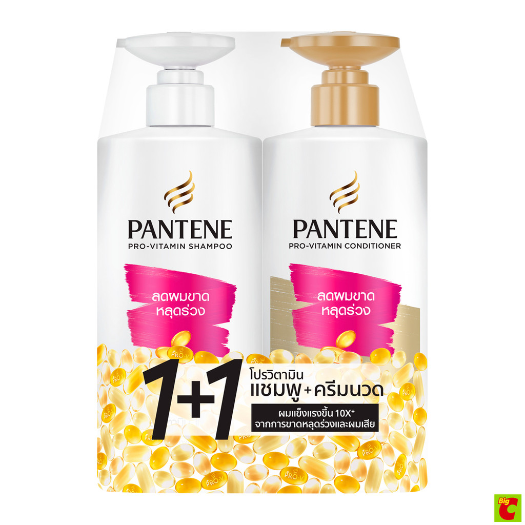 แพนทีน แชมพูและครีมนวดผม สูตรแฮร์ฟอล คอนโทรล 380 มล. แพ็ค 1+1