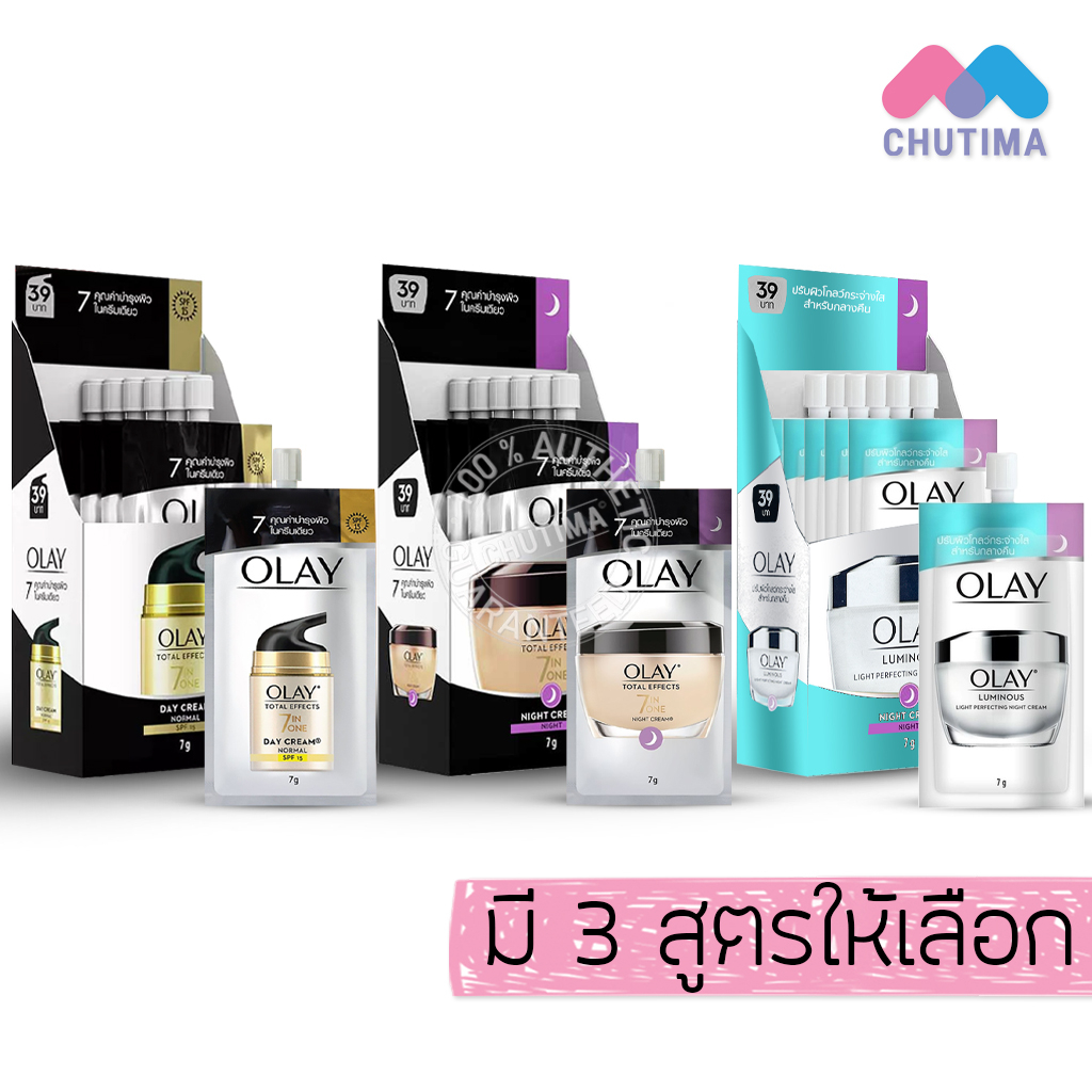 (แบบกล่อง) ครีมซอง โอเลย์ เดย์ครีม / ไนท์ครีม Olay Total Effect 7IN1 Day Cream / Night Cream / Luminous 7g. x6