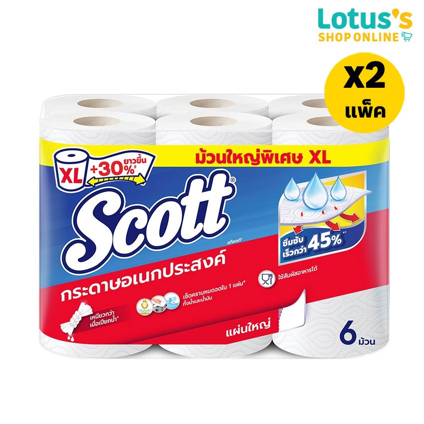 [ทั้งหมด 2 แพ็ค] สก๊อตต์ ทาวเวล บิ๊กโรล กระดาษอเนกประสงค์ แบบม้วน XL (แพ็ค 6 ม้วน) SCOTT TOWEL BIG-ROLL XL 6 ROLLS