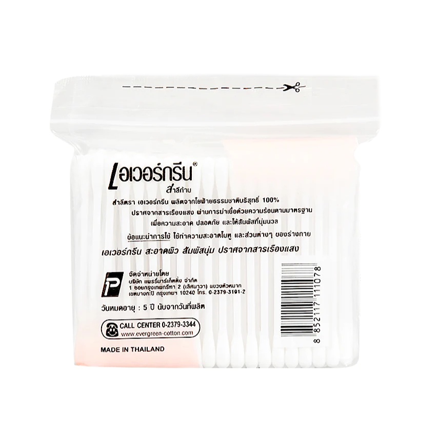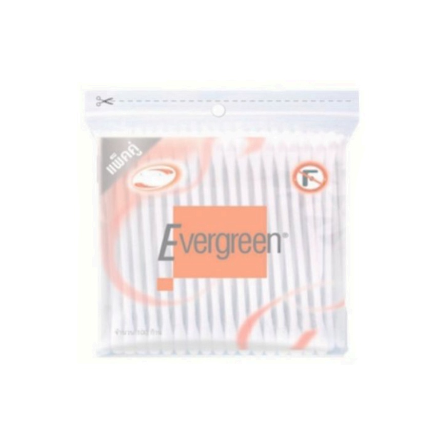[ทั้งหมด 6 แพ็ค] เอเวอร์กรีน สำลีก้าน 100x2 ห่อ EVER GREEN-COTTON BUD 100X2