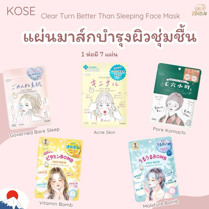 Kose Clear Turn Better Than Sleeping Face Mask แผ่นมาส์กบำรุงหน้า 1 ห่อ มี 7 แผ่น