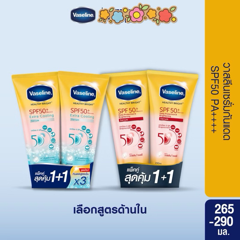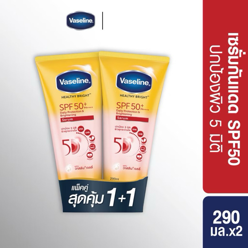 วาสลีน เฮลธี ไบรท์ เซรั่มกันแดด ซันแอนด์โพลูชั่น โพรเทคชั่น SPF50+ PA+++ ครีมกันแดด 290ml 2หลอด Vaseline Healthy Bright