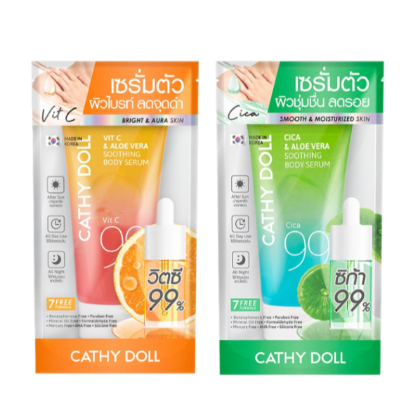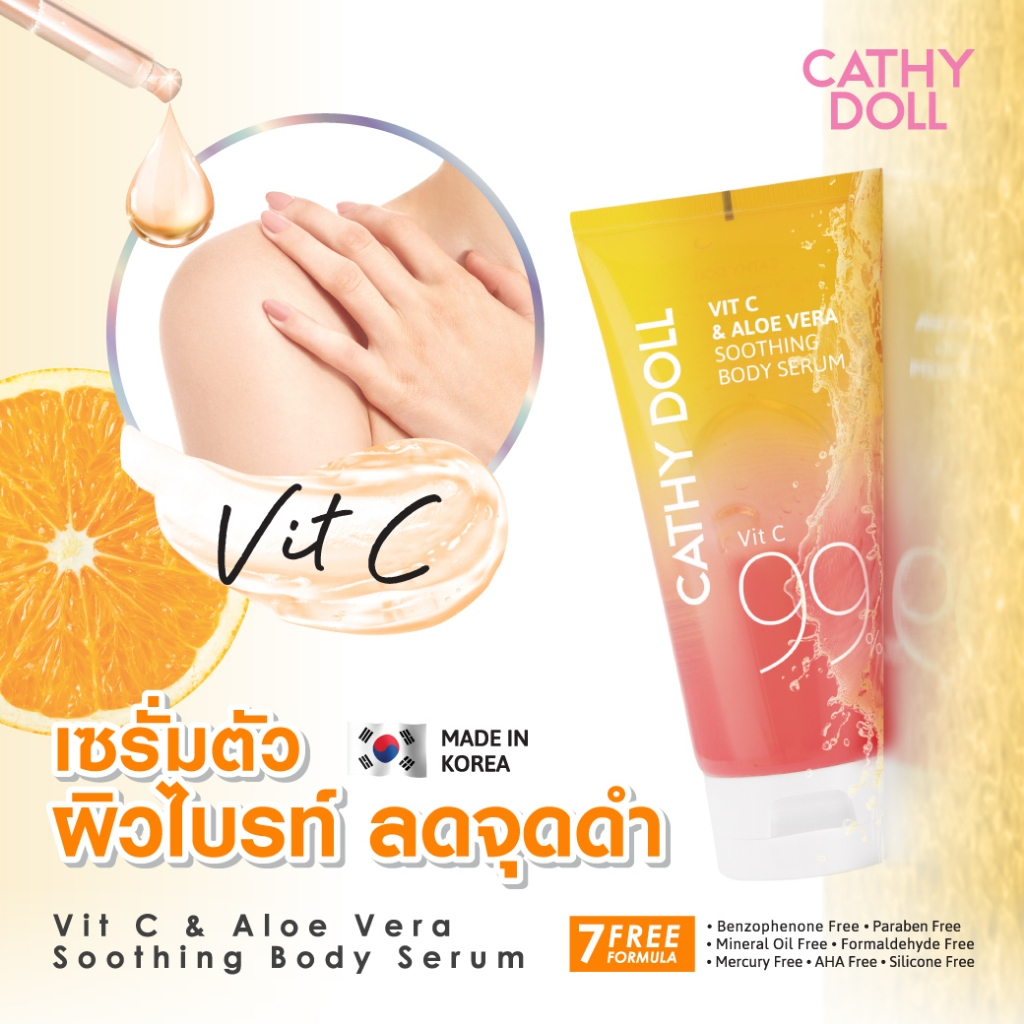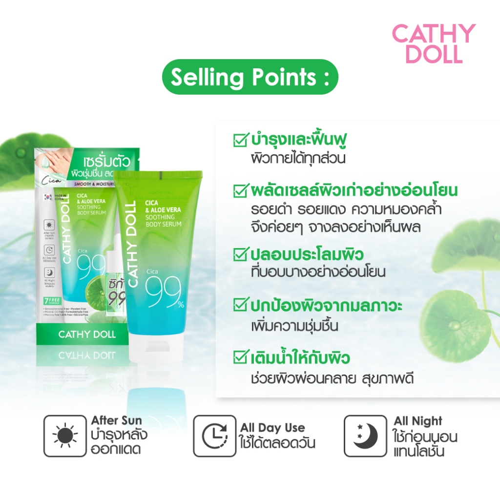 (1 หลอด) Cathy Doll ซูทติ้งบอดี้เซรั่ม 175g มี 2 สูตร Vit C & Aloe Vera / Cica & Aloe Vera