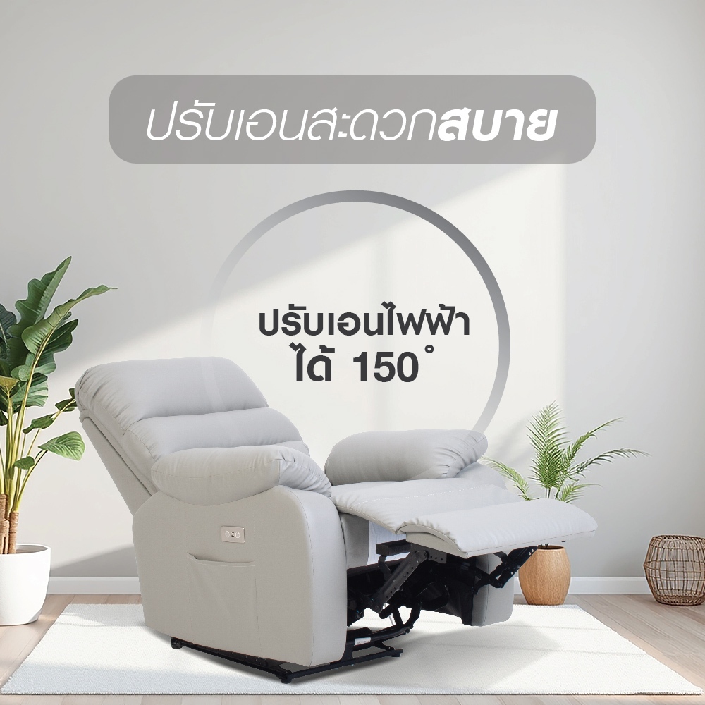 FURDINI เก้าอี้ปรับเอนไฟฟ้า JASPER สีเทา จัดส่งโดย HomePro