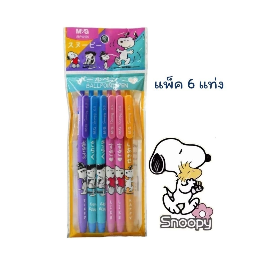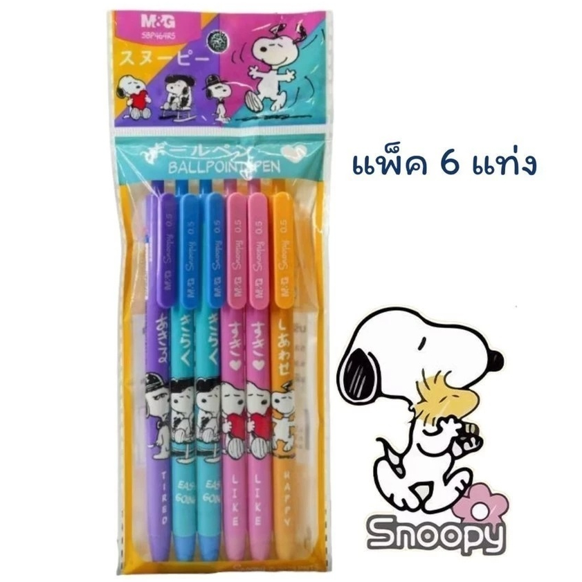 (แพ็ค/6 ด้าม) ปากกาลูกลื่น Snoopy M&G หัว 0.38mm / 0.5mm หมึกน้ำเงิน