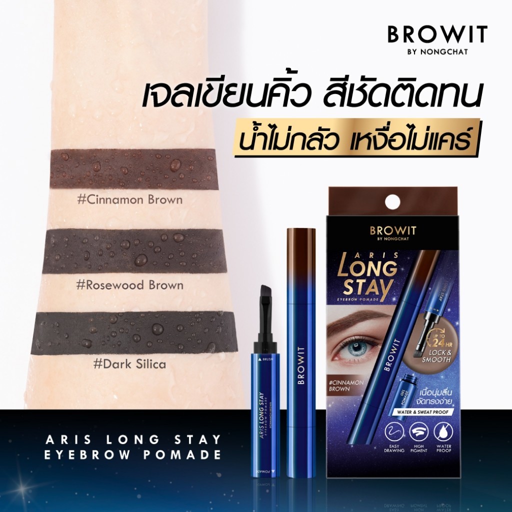 เจลเขียนคิ้ว บราวอิท น้องฉัตร อริส ลอง สเตย์ กันน้ำ สีชัด ติดทน Browit By Nongchat Aris Long Stay Eyebrow Pomade 1.6 g.