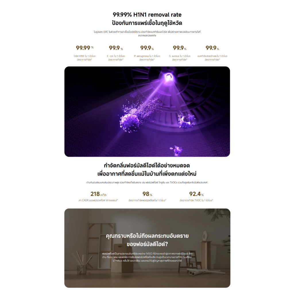 🆕Mijia Smart Air Purifier 6 เครื่องฟอกอากาศอัจฉริยะ | 443 ลบ.ม./ชม. | อัตราการกำจัดไวรัส H1N1 ถึง99.99%
