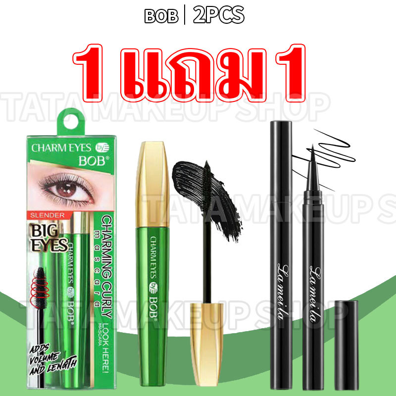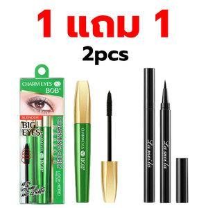 【 ซื้อ 1 แถม 1】 BOB มาสคาร่า+อายไลเนอร์กันน้ำ 3Dสีดำกันเหงื่อ ติดทน 9ml ไม่เลอะ ไม่เปื้อน ขนตายาว[สินค้าแท้มีเลขทะเบียน]