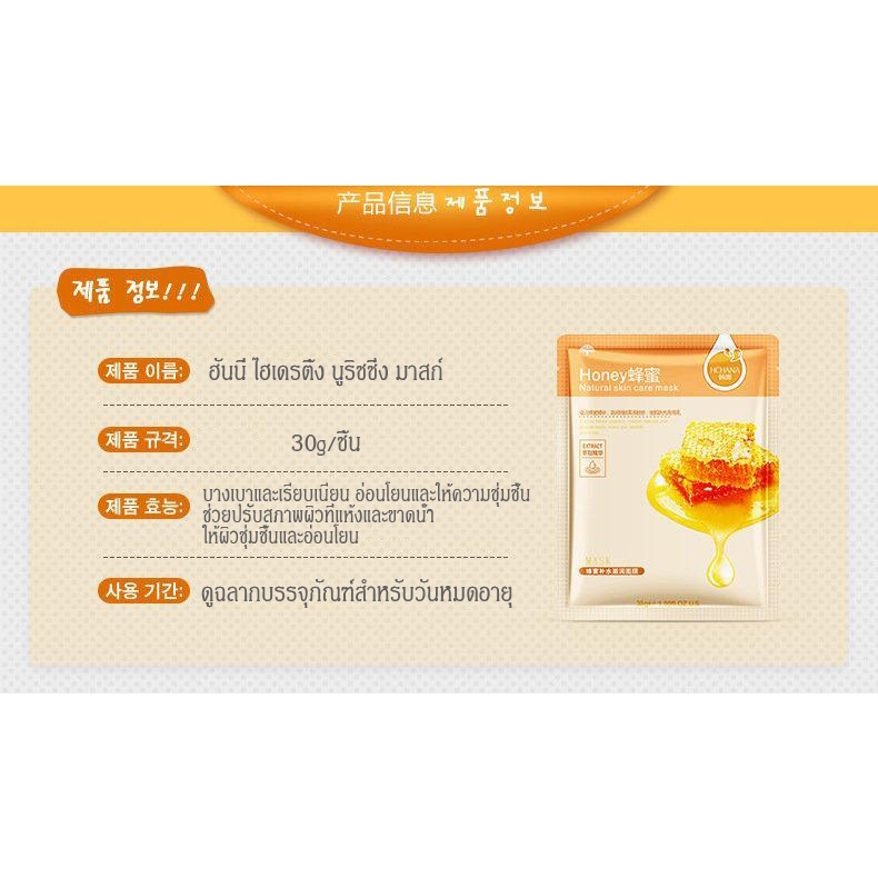 Honey mask มาส์กน้ำผึ้ง มาส์กผิวขาวเนียนใส ลดริ้วรอย อย่างเห็นผลมาส์กให้ความชุ่มชื้นแผ่นมาสก์หน้าน้ำผึ้งธ บำรุงผิวพรรณ