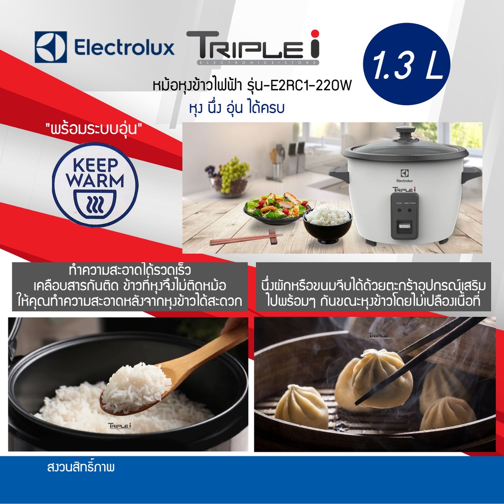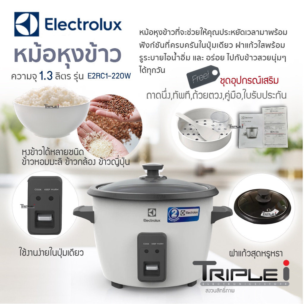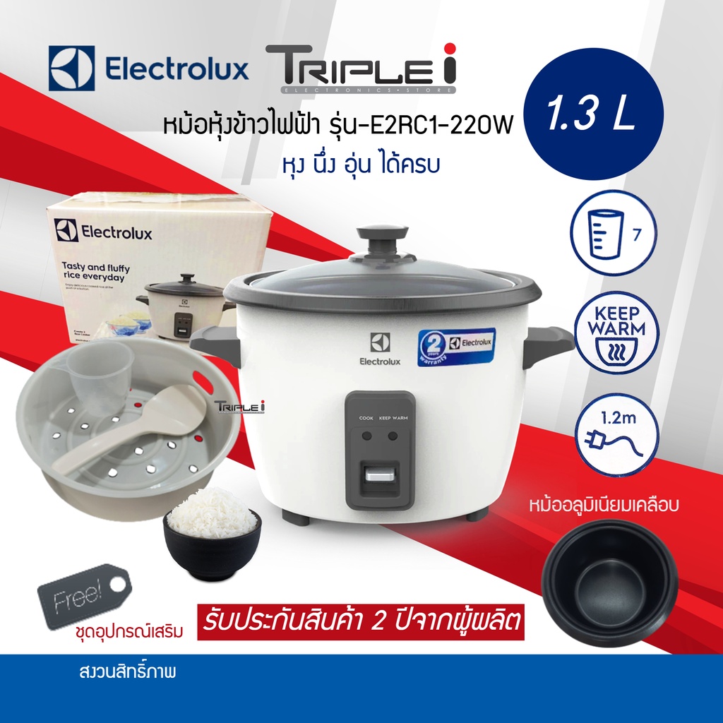 ELECTROLUX หม้อหุงข้าว ฝากระจก E2RC1-220W ขนาด 1.3 ลิตร ตัวหม้อชั้นในหนา 1.0 มิลลิเมตร เคลือบสารกันติด รับประกันสินค้า