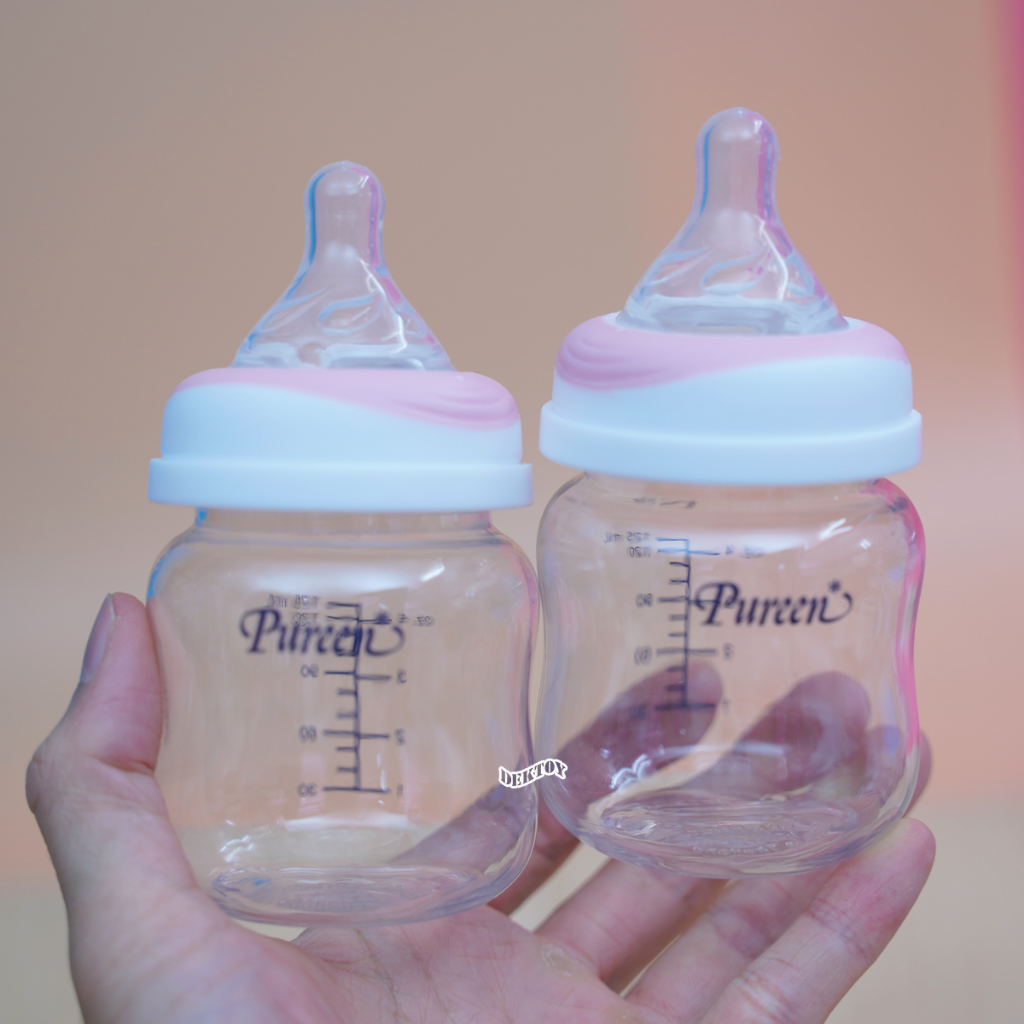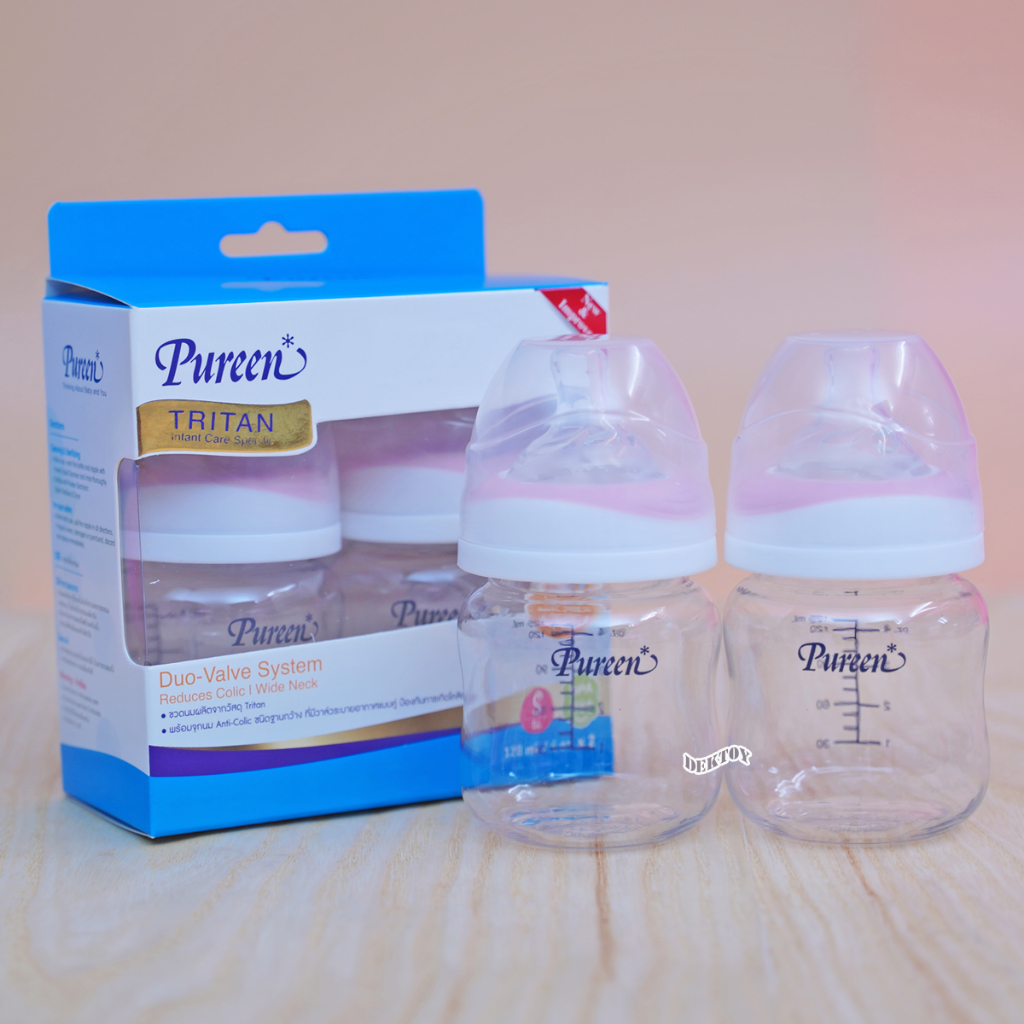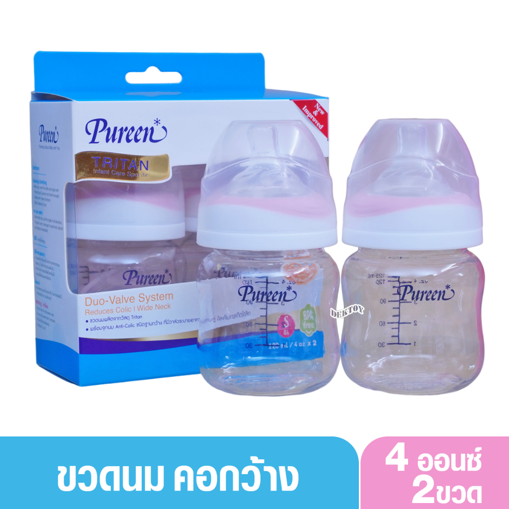 4ออนซ์ Pureen เพียวรีน ขวดนมเพียวรีน Tritan ไทรทัน4ออนซ์คอกว้างแพ็ค2ขวดสีชมพู
