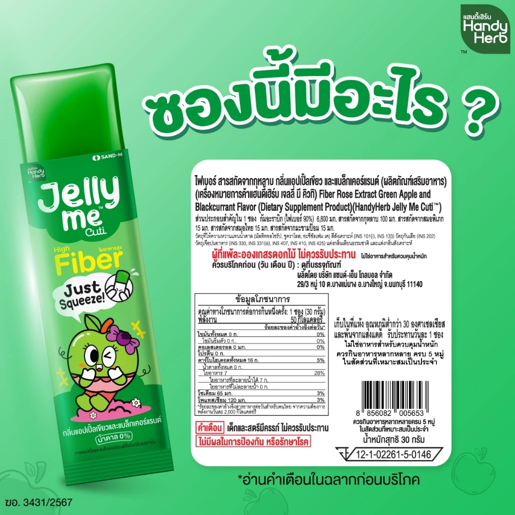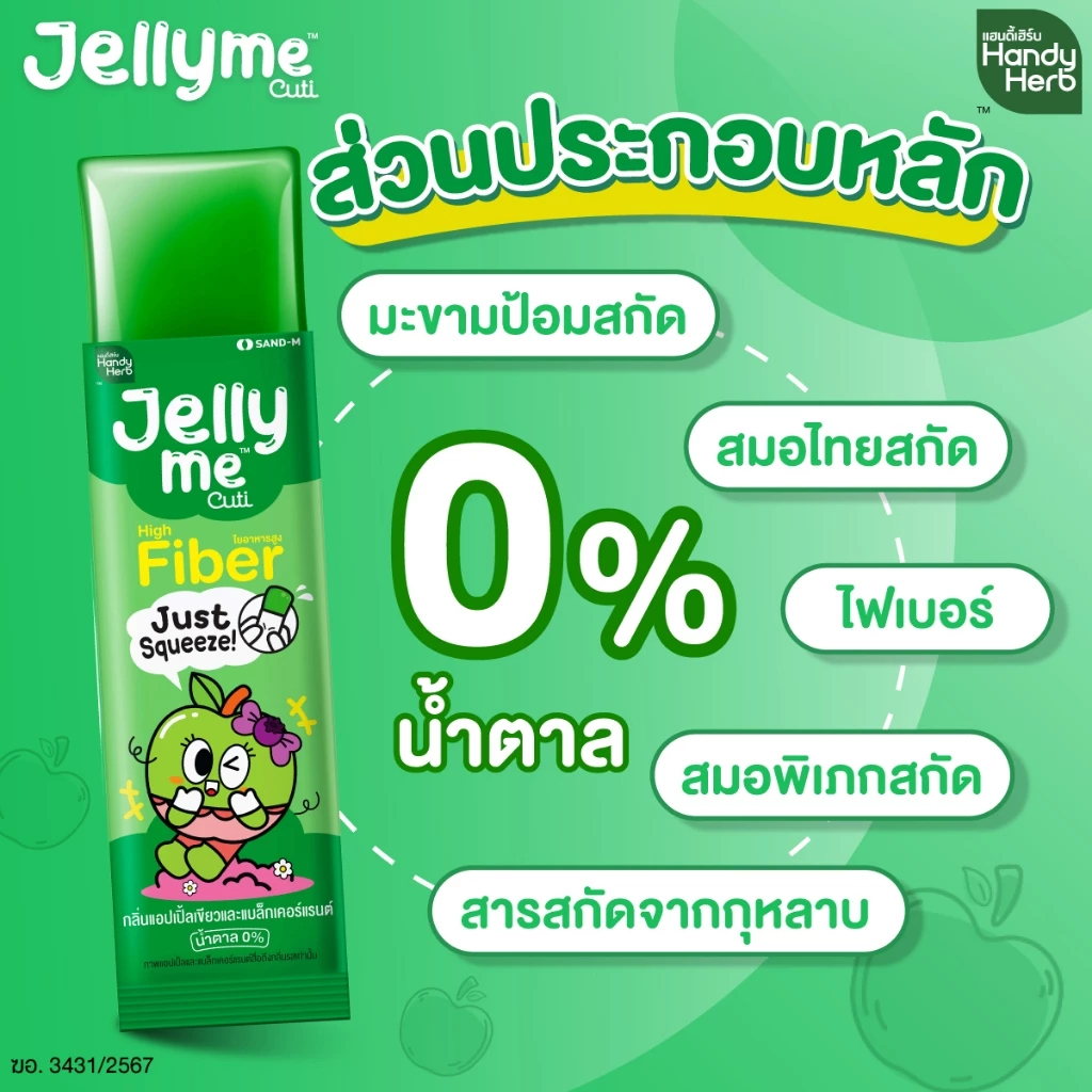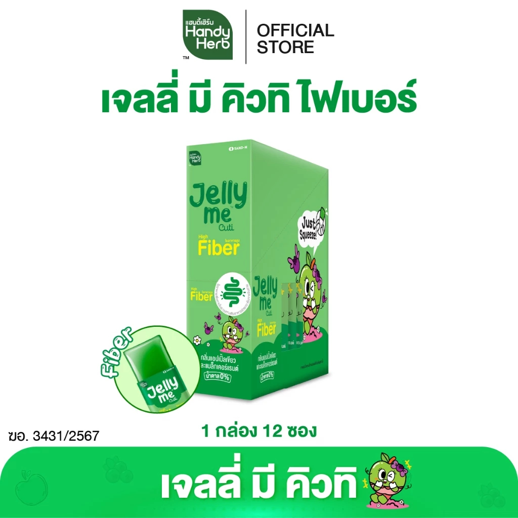 HandyHerb Jelly Me Cuti Fiber เจลลี่ มี คิวทิ ไฟเบอร์ กลิ่นแอปเปิ้ลเขียว และแบล็กเคอร์แรนท์ 1 กล่อง (12 ซอง)