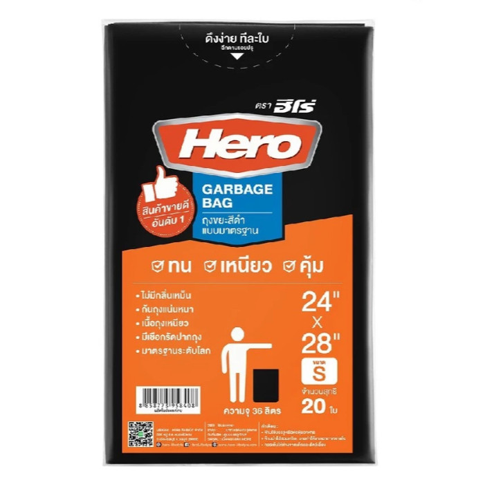 Hero ถุงขยะสีดำ คุณภาพมาตรฐาน – เหนียวทน ใช้งานคุ้มค่า ไม่ฉีกง่าย เหมาะกับบ้าน ร้านค้า และสำนักงาน