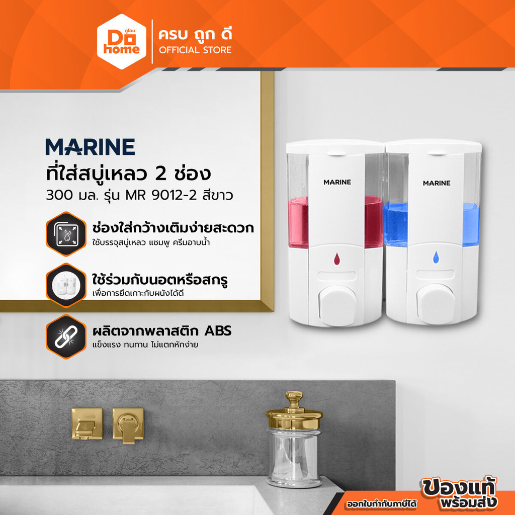 MARINE ที่ใส่สบู่เหลว 2 ช่อง 300 มล. รุ่น MR 9012-2 สีขาว |EA|