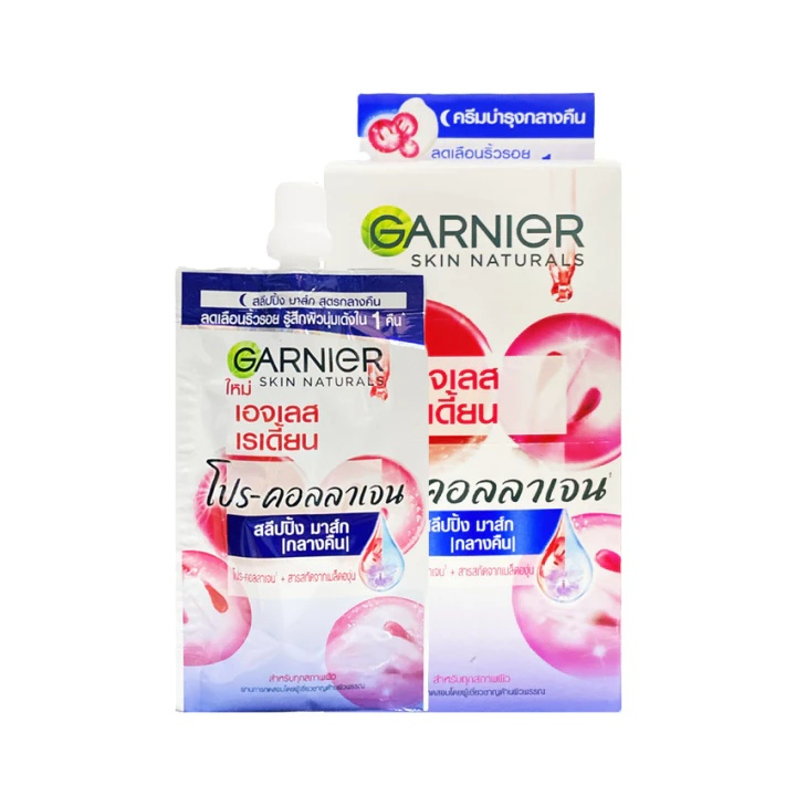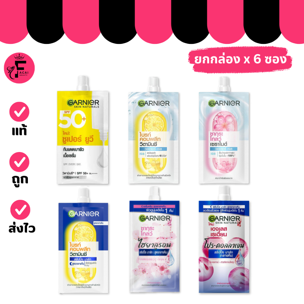 (กล่อง 6 ซอง) Ganier การ์นิเย่ กันแดดยูวี/วอเตอร์เจล/สลีปปิ้งมาส์ก มีให้เลือก 6 สูตร (ปริมาณ 7 ml.)