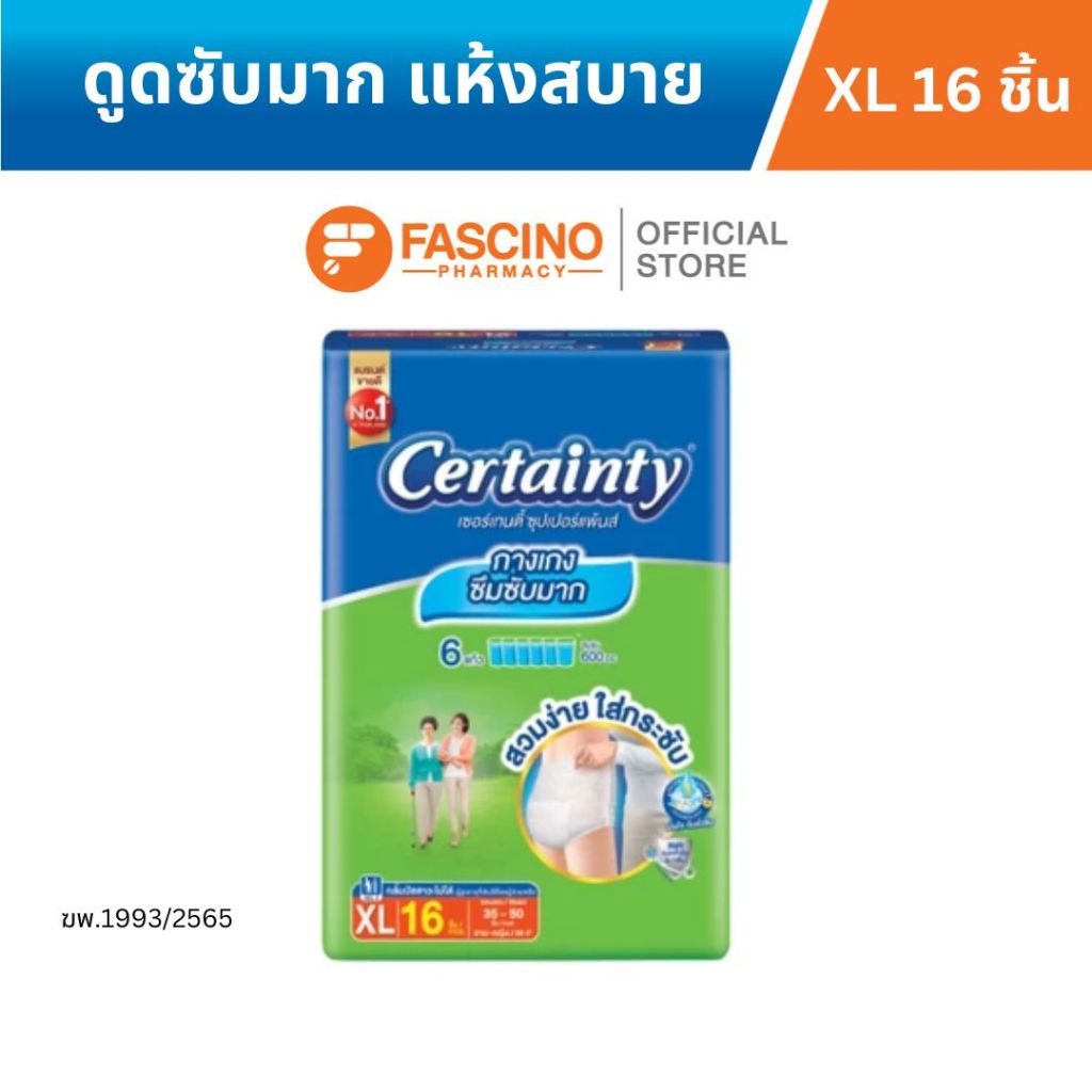 Certainty Superpants เซอร์เทนตี้ ซุปเปอร์แพ้นส์ กางเกงผ้าอ้อมผู้ใหญ่ ซึมซับมาก Size XL 16 ชิ้น
