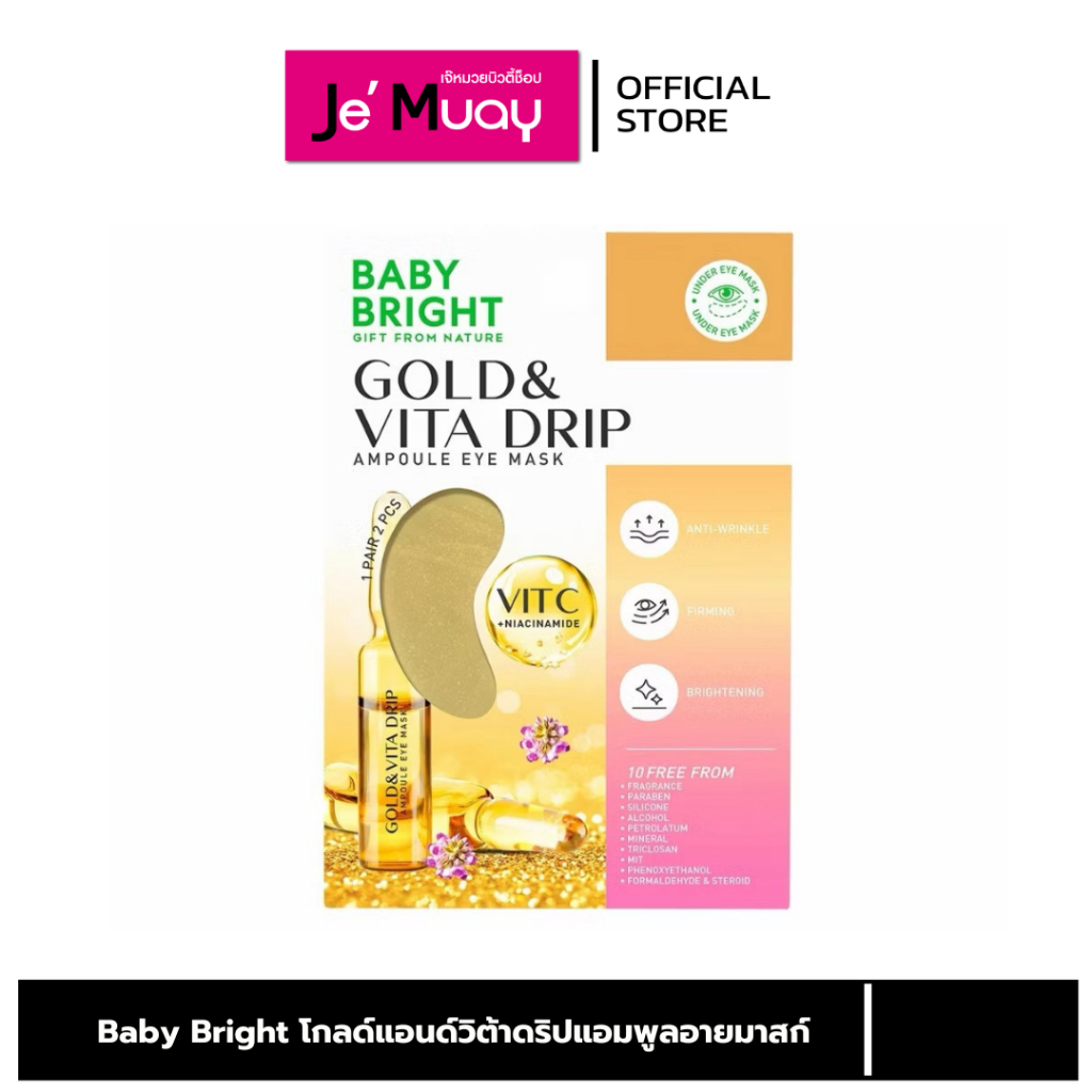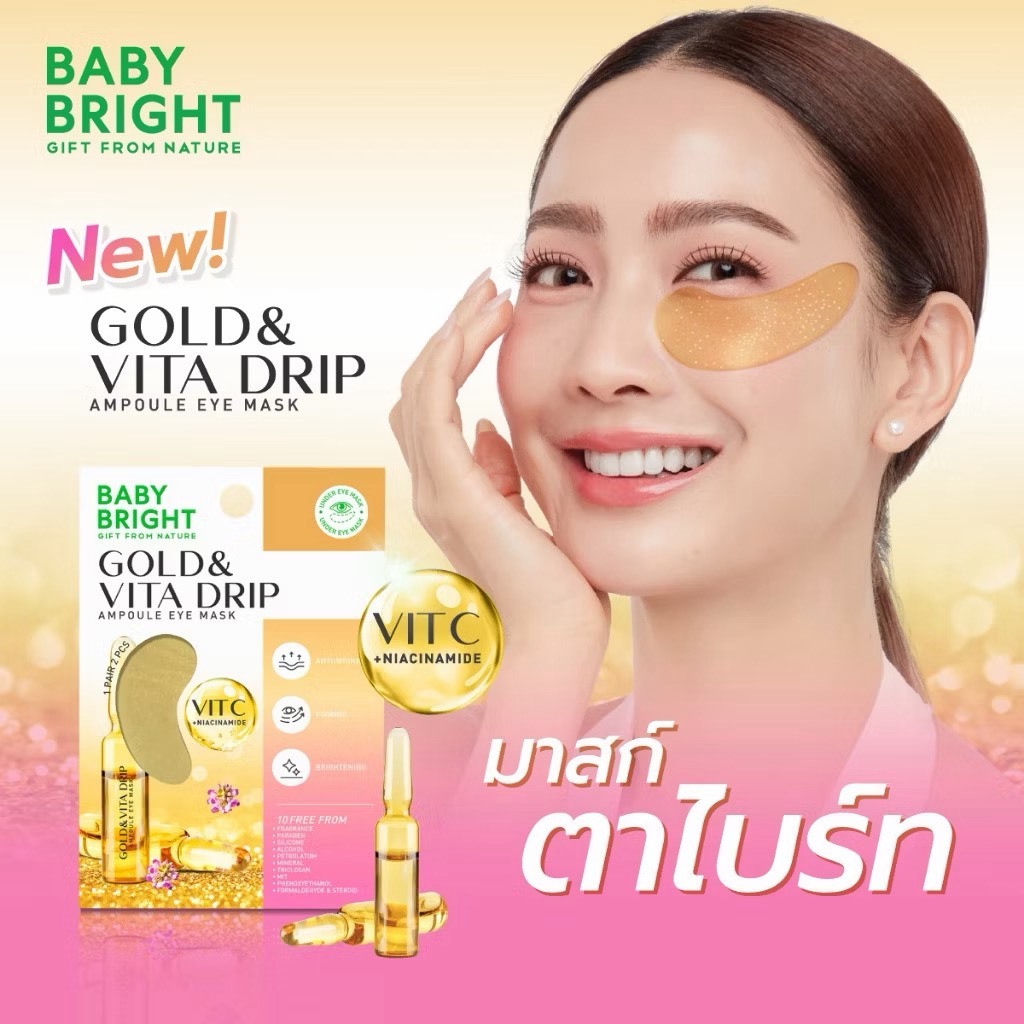 [1 คู่ ] Baby Bright เบบี้ไบร์ท โกลด์แอนด์วิต้าดริปแอมพูลอายมาสก์ มาร์กตา ตาไบร์ท 2.5 g.