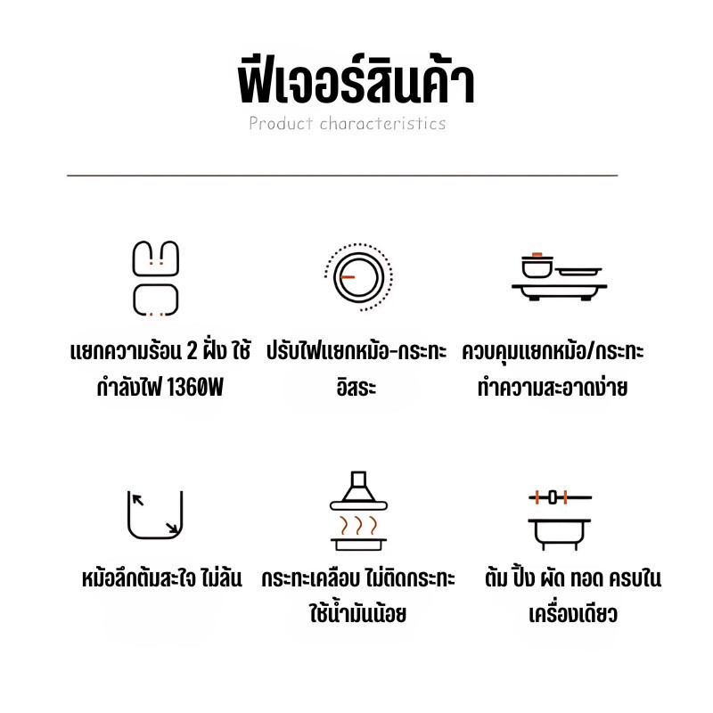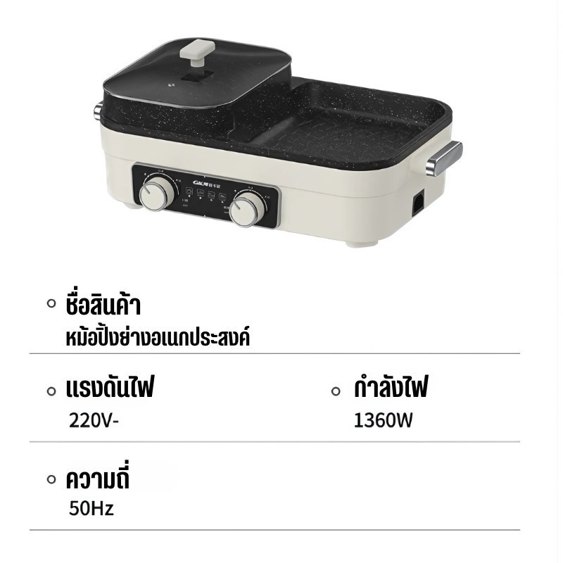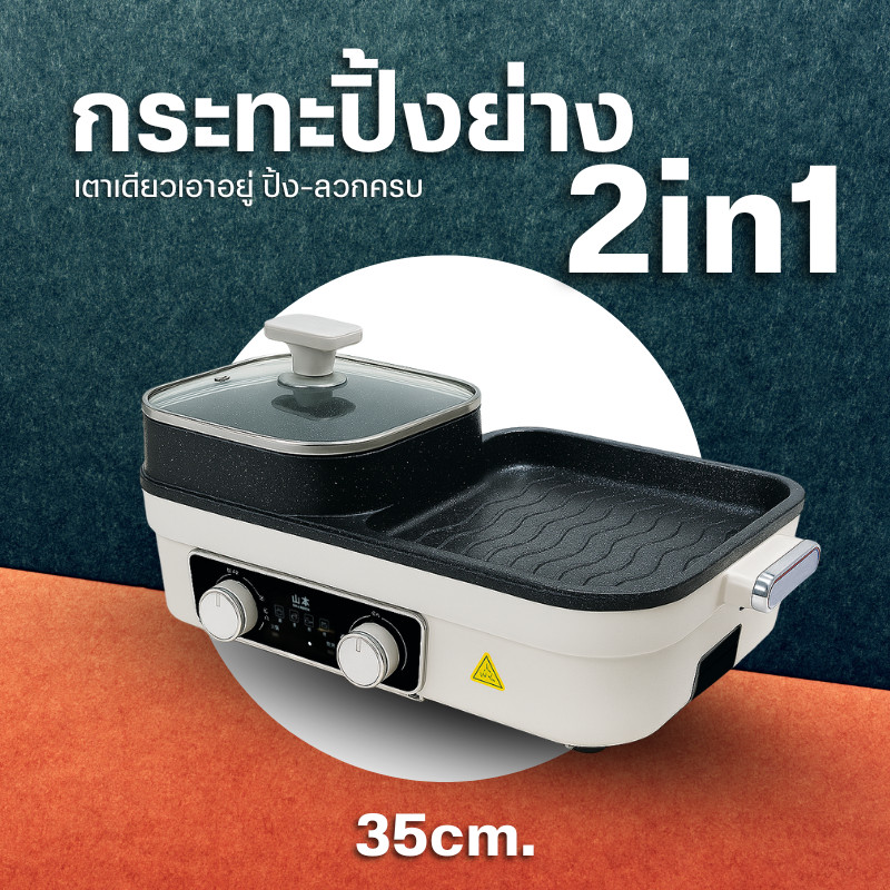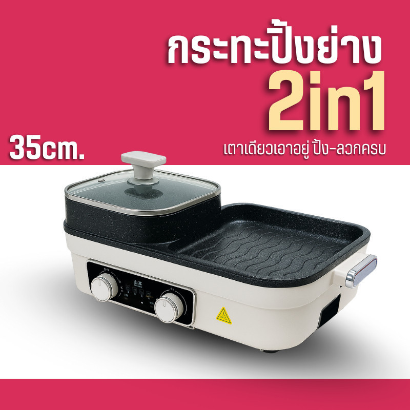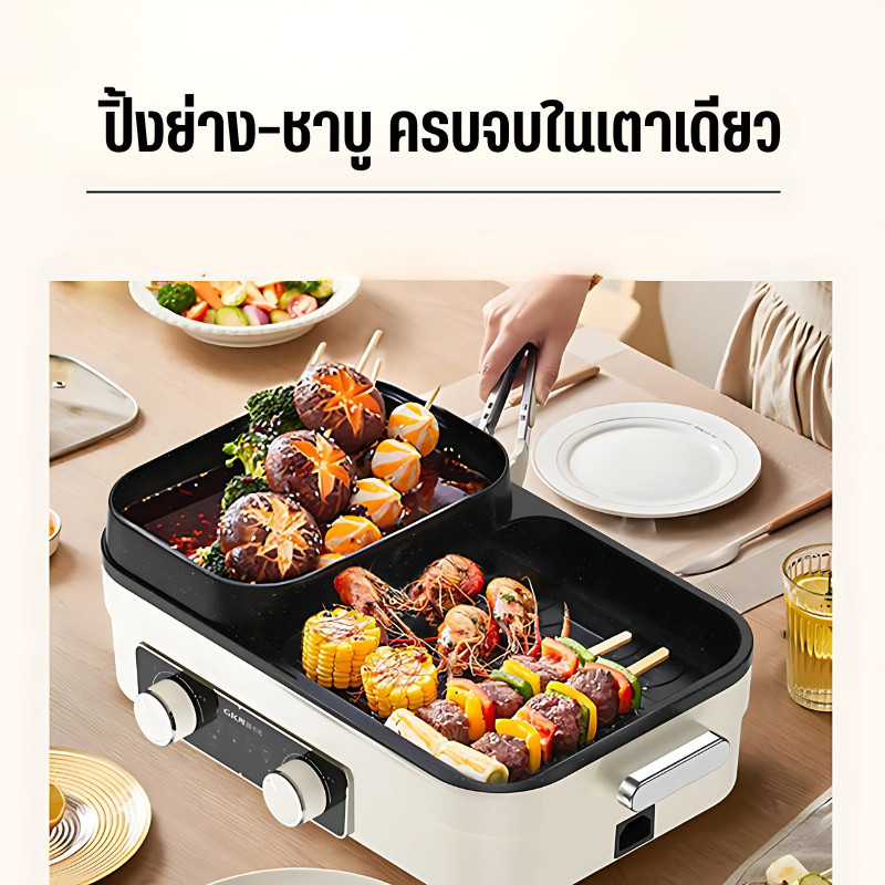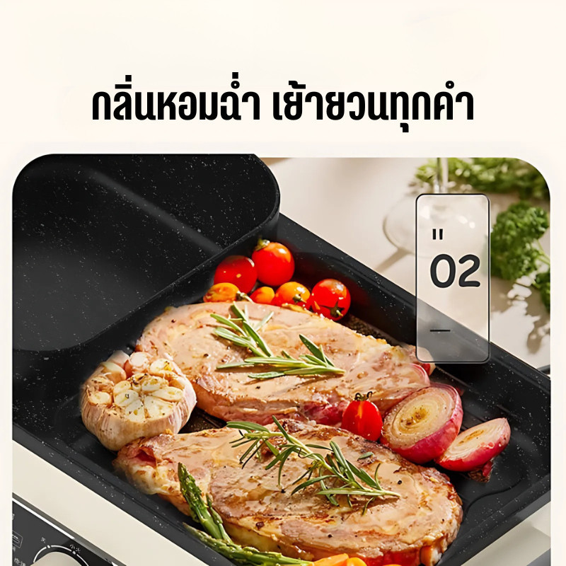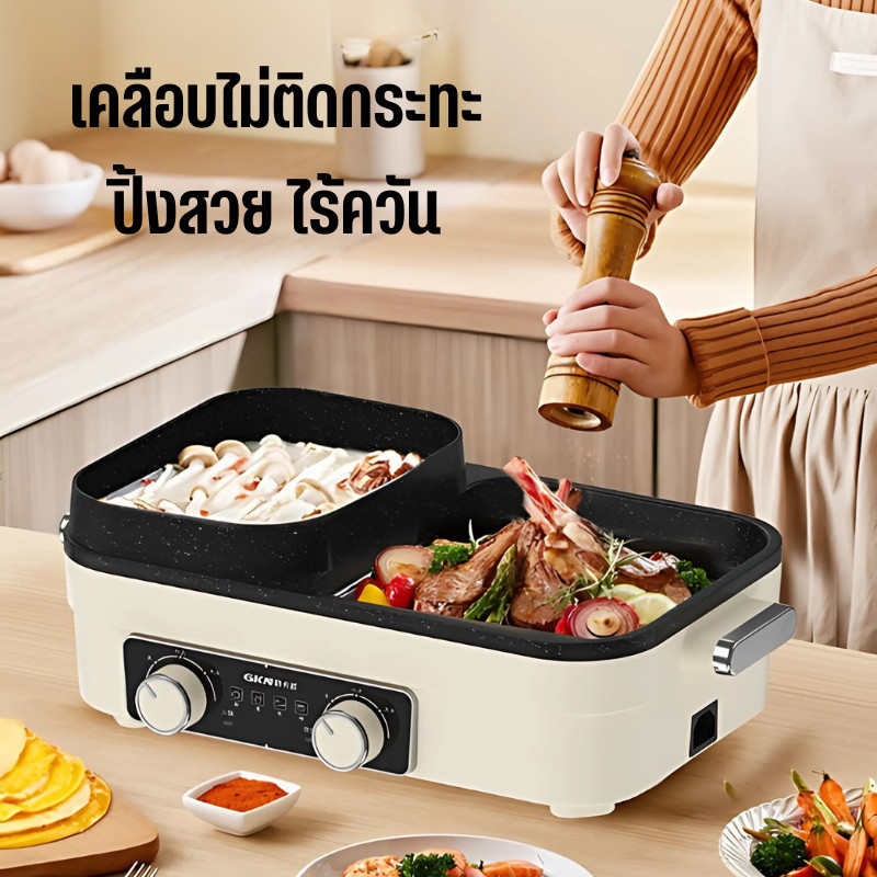 2ช่อง ระทะไฟฟ้า กระทะ 2Lหม้อสุกี้ กระทะอเนกประสงค์ 2 in 1 เตาปิ้งย่าง เอนกประสงค์ D0225