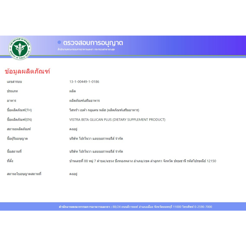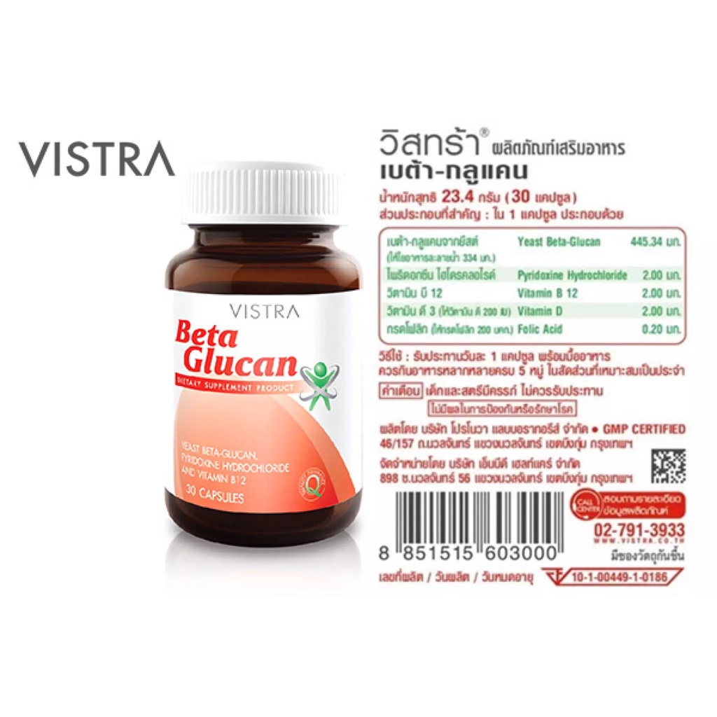 VISTRA Beta Glucan Plus 30 caps วิสทร้า เบต้า กลูแคน 30 แคปซูล