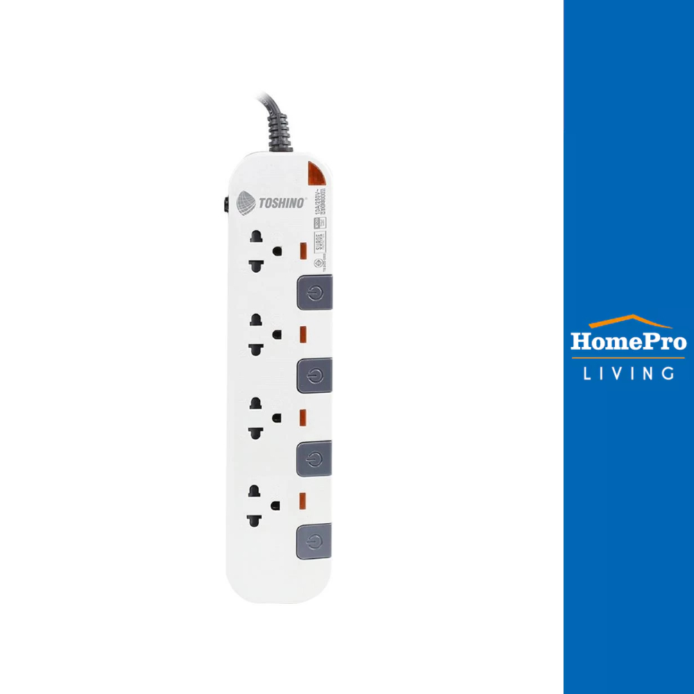 TOSHINO รางปลั๊กไฟ 4 ช่อง 4 สวิตซ์ P4375 3 ม. สีขาว-เทา จัดส่งโดย HomePro