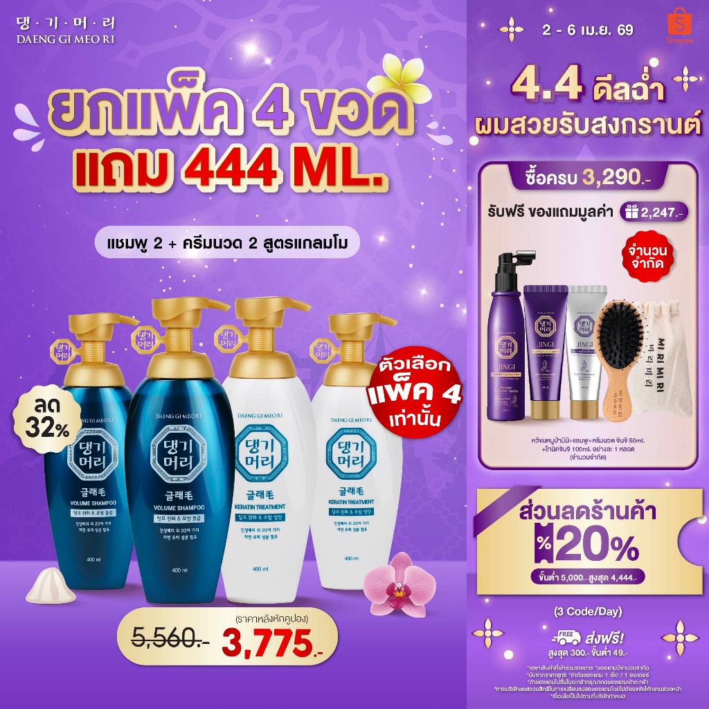 [Combo Set] DAENG GI MEO RI แชมพูลดผมร่วง แทงกีโมรี สูตรแกลมโม Glamo Shampoo+Treatment 400 ml สูตรอ่อนโยน