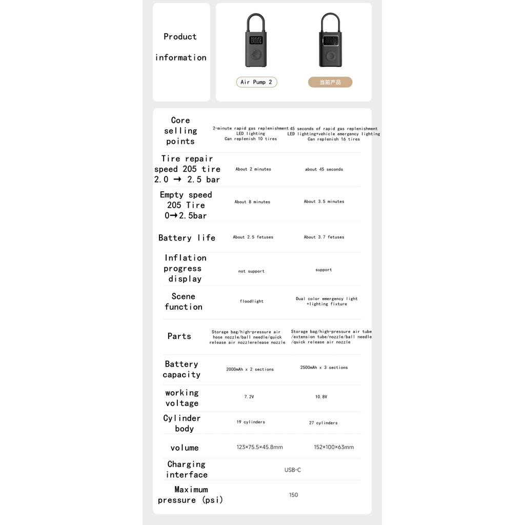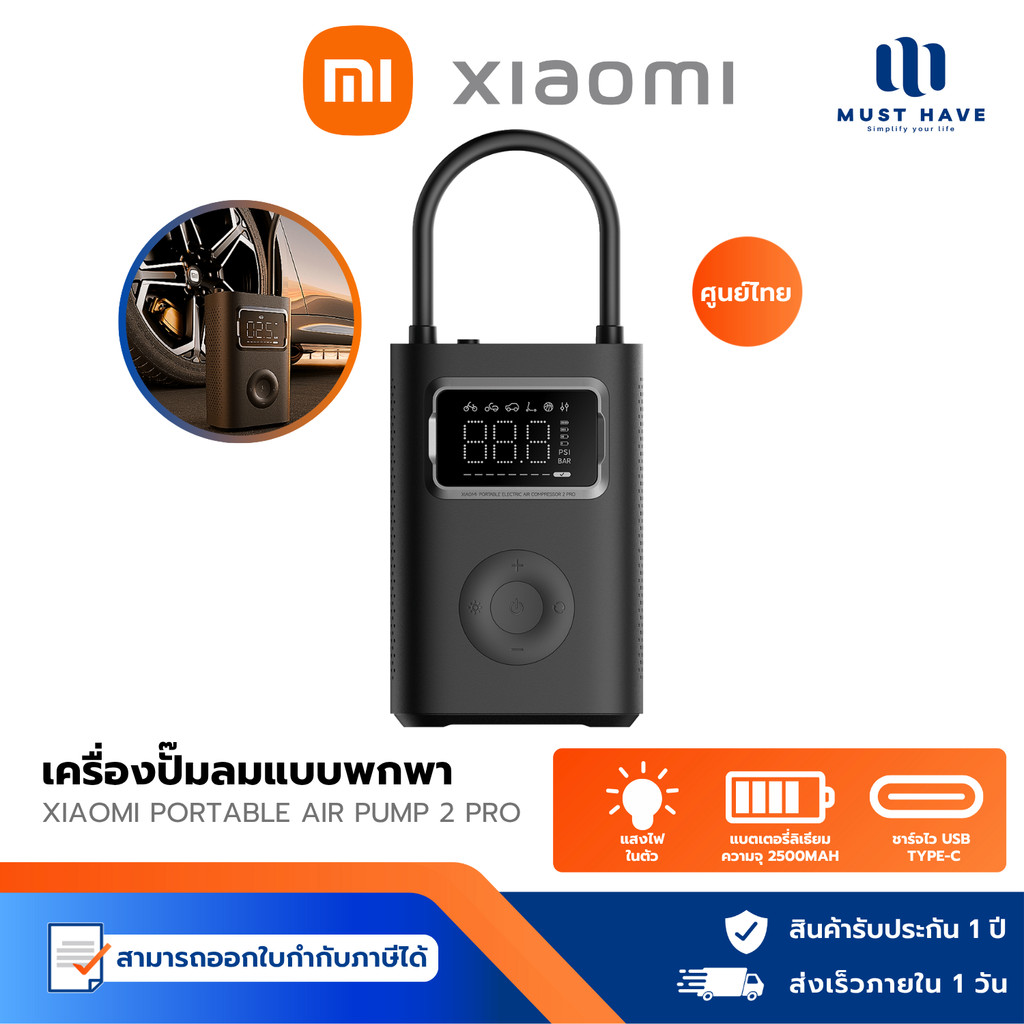 Xiaomi Portable Electric Air Pump 2 Pro เครื่องปั๊มลมไฟฟ้าแบบพกพา แบบพกพาเครื่องอัดอากาศแบบไฟฟ้า