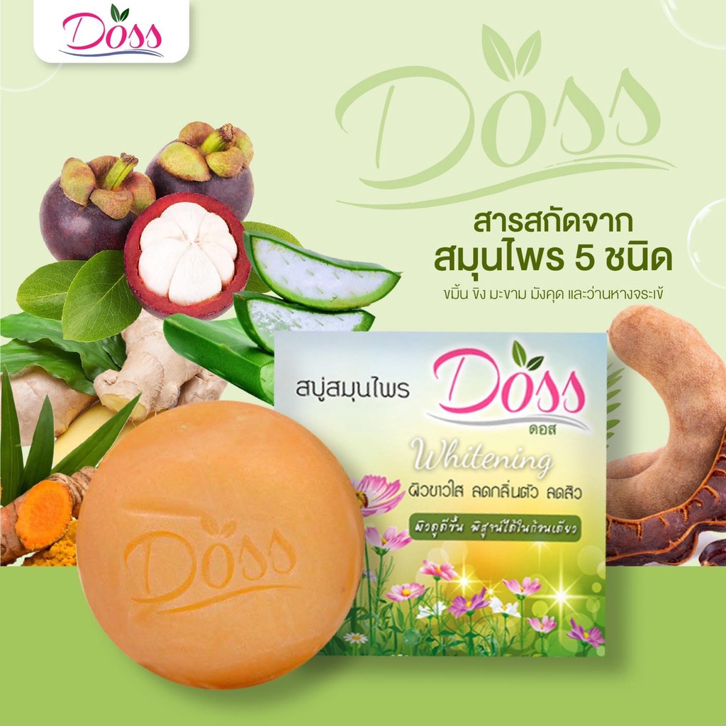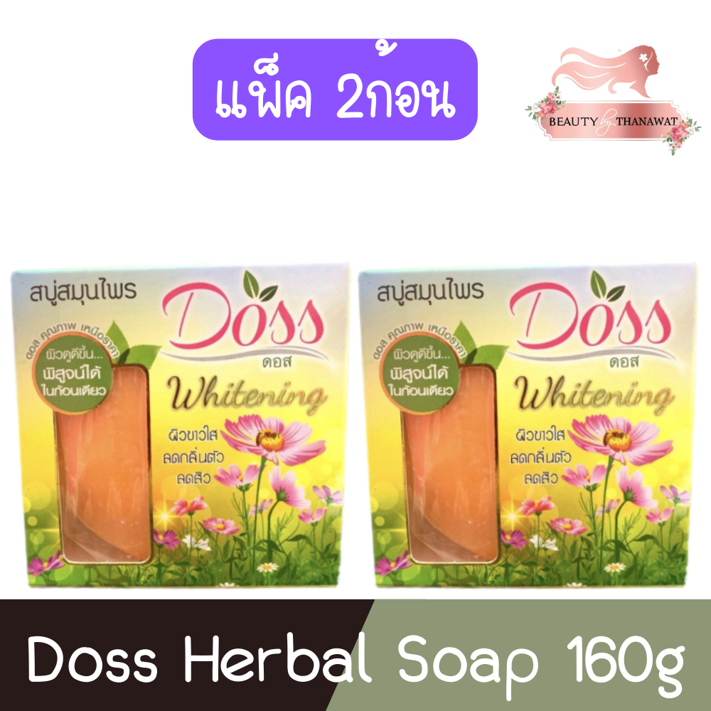 (แพ็ค 2ก้อน) Doss Herbal Soap 160g สบู่สมุนไพร ดอส 160กรัม (สูตรอโรม่า)