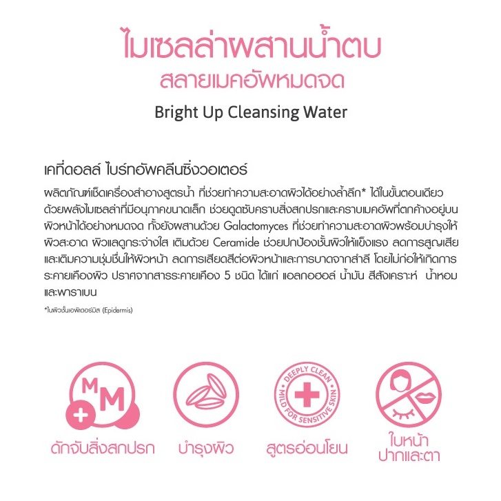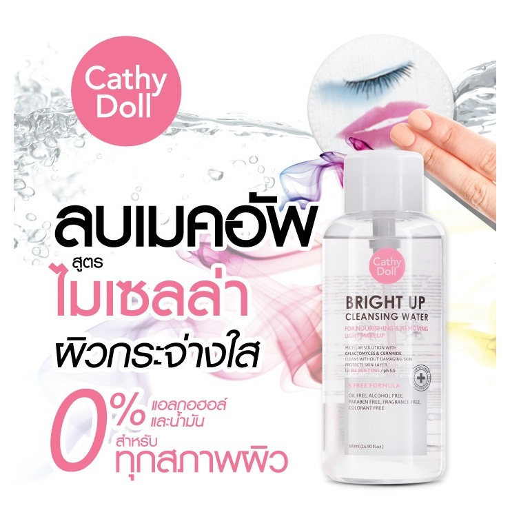 Cathy Doll【ขวดสีขาวใส】เช็ดเครื่องสำอาง【ใช้ได้ใบหน้า ตา ปาก】Cathy Doll Bright Up Cleansing Water