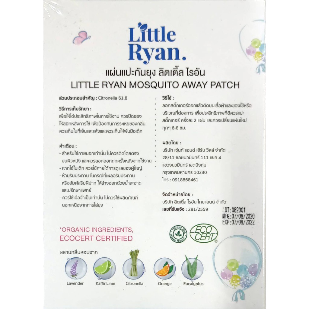 Little Ryan สติ๊กเกอร์ติกันยุง ยากันยุงสำหรับเด็ก ไม่มีสารเคมี ปกป้องนาน 6-8 ชั่วโมง