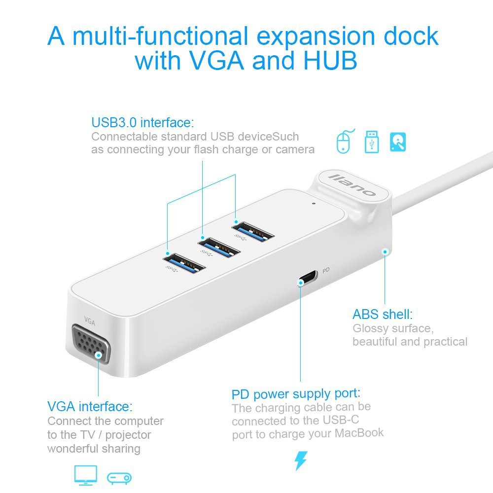 Lluno Type - C To Vga Type C To Usb 3 . 0 Hub 12 / New Pro Macbook อุปกรณ์เสริมคอมพิวเตอร์