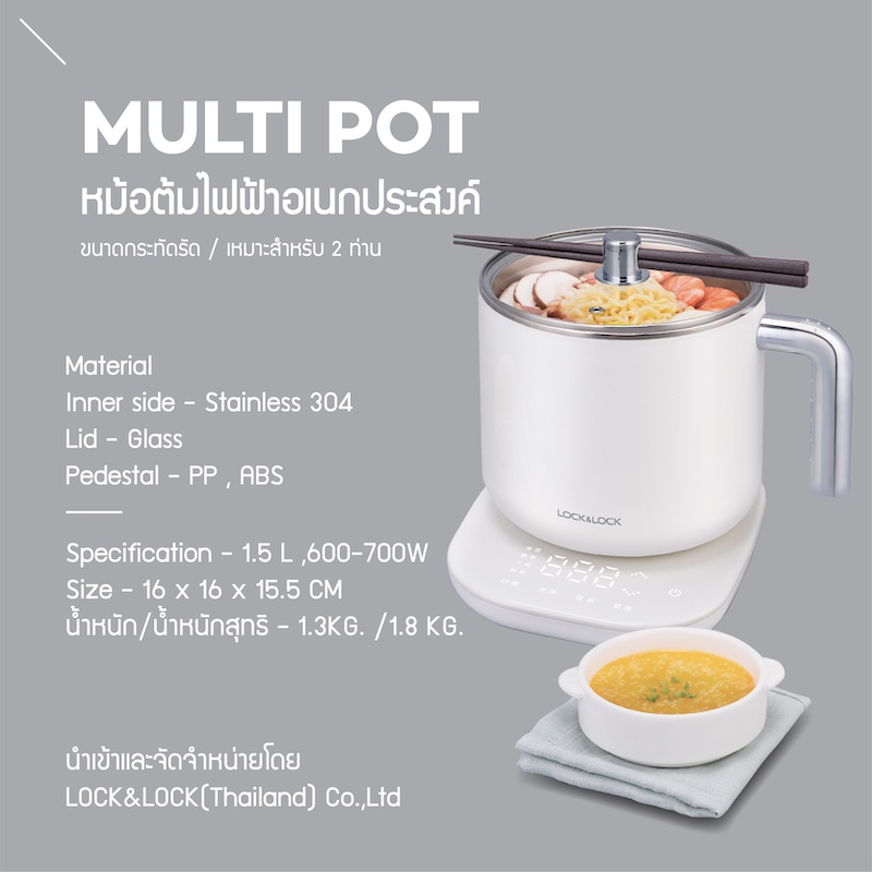 LocknLock หม้อไฟฟ้าอเนกประสงค์ Multi Pot ความจุ 1.5 L. รุ่น EJC141