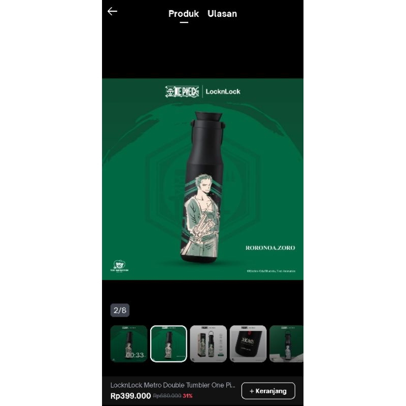 Locknlock lock n lock Metro double Tumbler One Piece zoro ver.